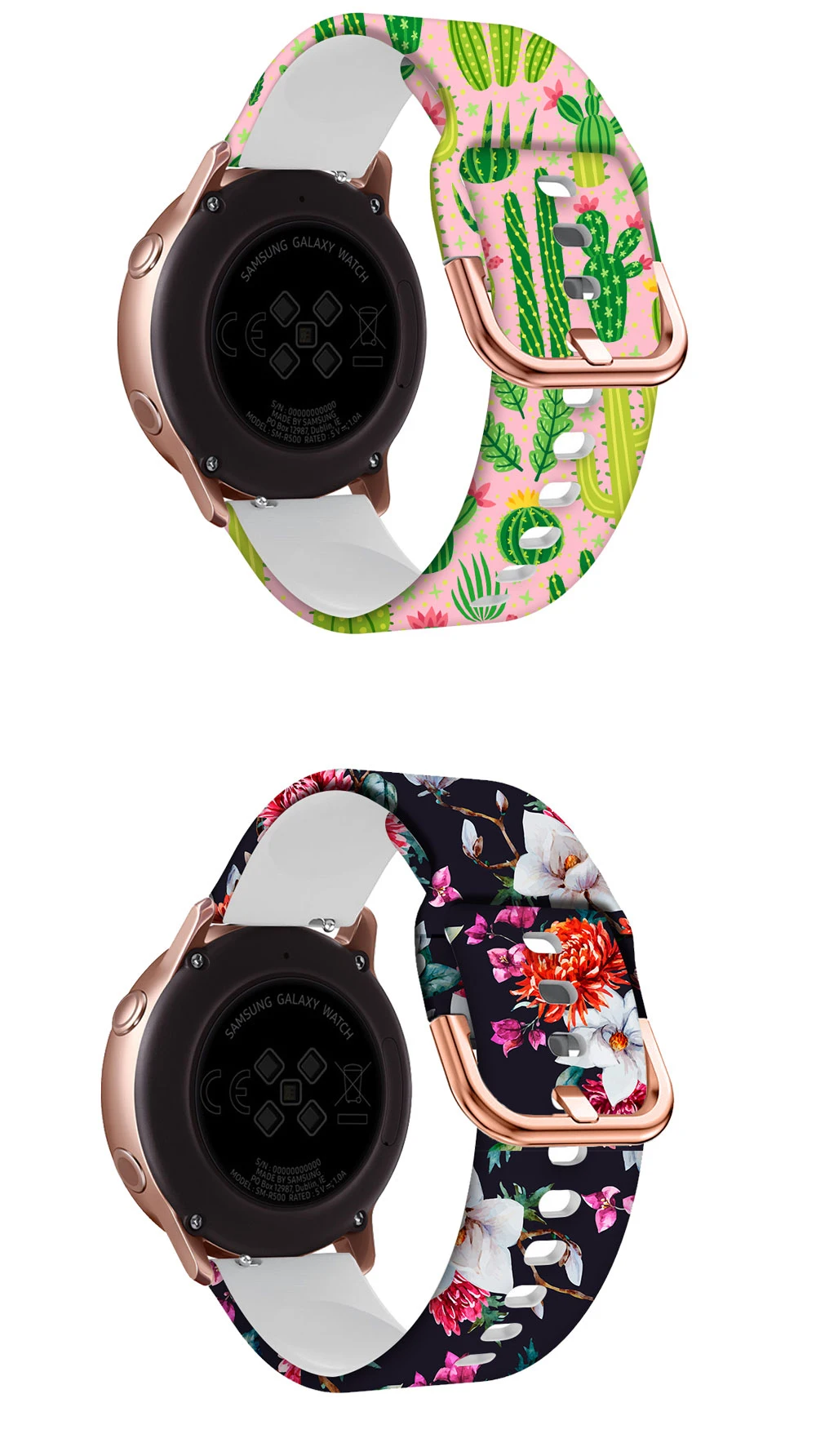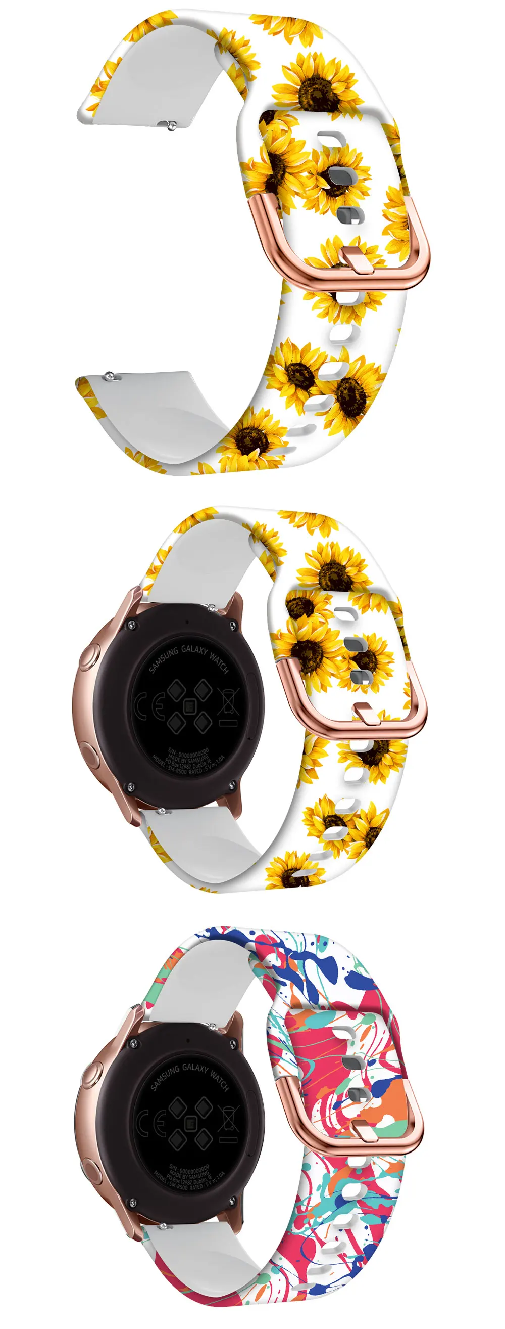 20 мм силиконовый спортивный ремешок с цветочным принтом для Samsung Galaxy Watch Active2 42 мм Gear S2 Amazfit GTS/BIP S/U Huawei GT2 42 мм