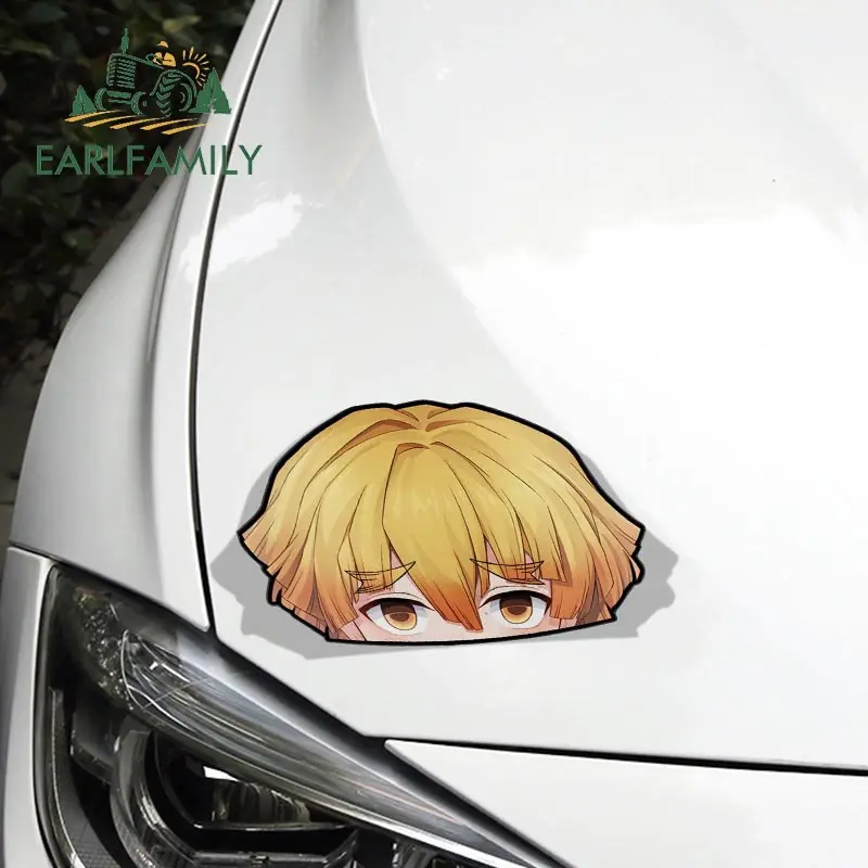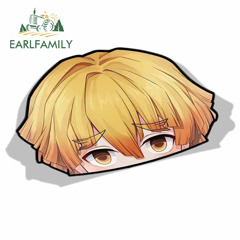 Виниловая наклейка EARLFAMILY, 13 см х 8 см для Zenitsu Agatsuma Demon Slayer Peeker, аниме, Виниловая наклейка на окно JDM наклейка на багажник