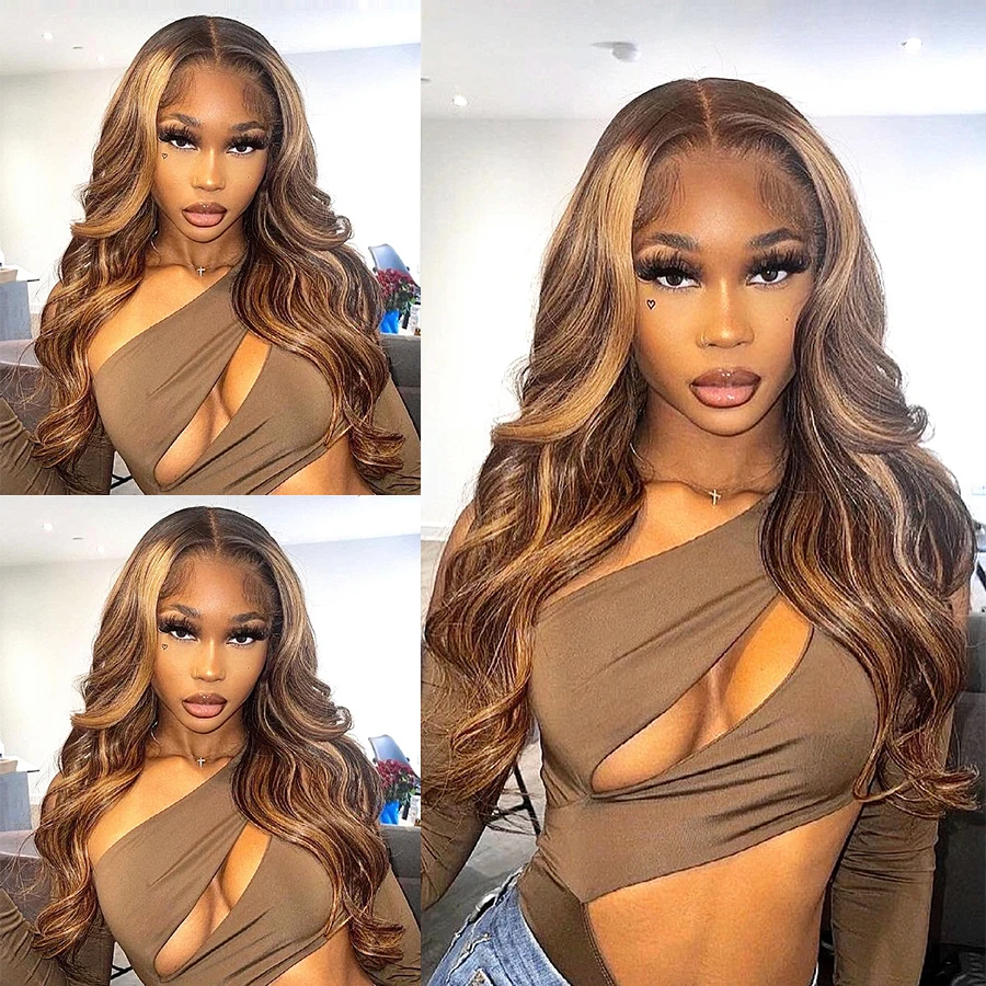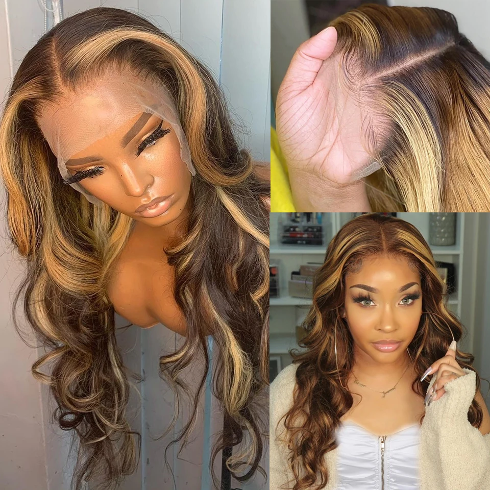 Парики из человеческих волос с эффектом омбре, парик на сетке с волнистыми волосами, светлые неповрежденные волосы 13x4, парик на сетке спереди с эффектом омбре, коричневый цветной парик для женщин