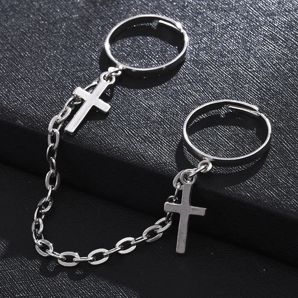 Япония, Южная Корея, тренд, набор колец, комбинация, для мужчин, женщин, мужчин, ювелирное изделие, индивидуальное, преувеличенное, два пальца, соединенная цепочка, Открытое кольцо, новое