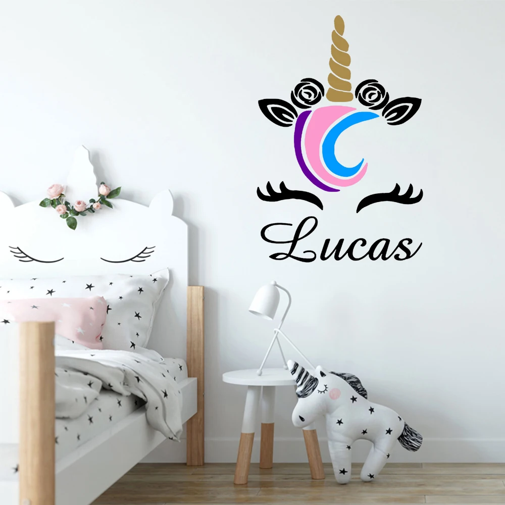 Новое поступление красочные Единорог Пользовательское Имя стены Стикеры винил монограмма тема для детей Детская комната художественный плакат с персонажами из мультфильмов B530