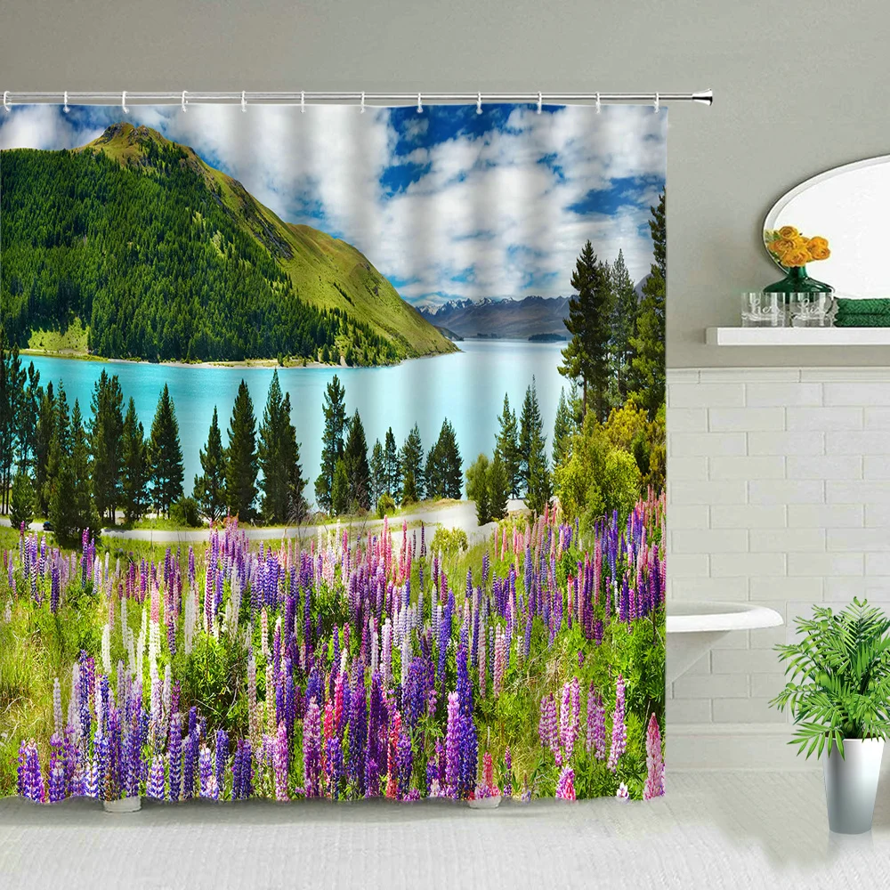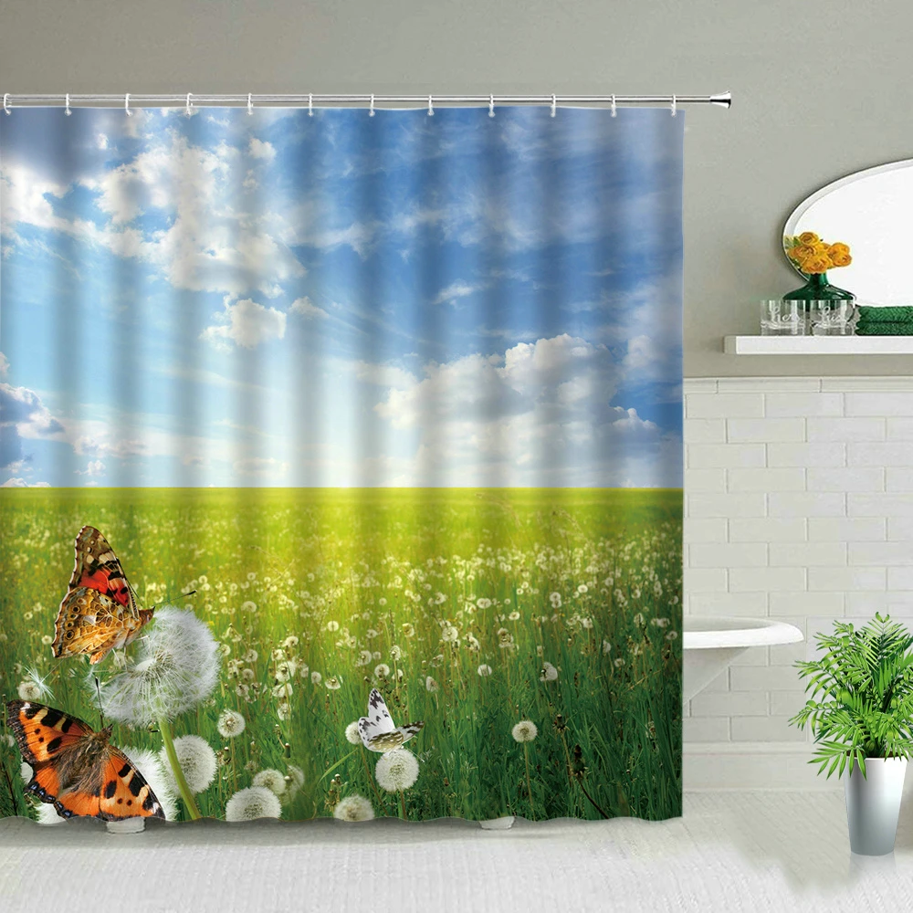 Занавеска для душа с весенним пейзажем, водонепроницаемая декоратив...