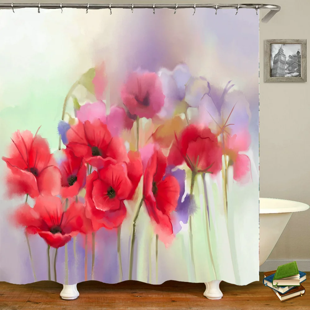 Набор занавесок для душа с рисунком мака, красных цветов, растений,...