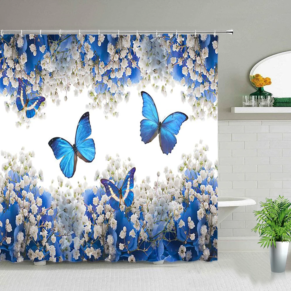 Зеленые растения цветы занавеска для душа s Бабочка Роза забор стен...