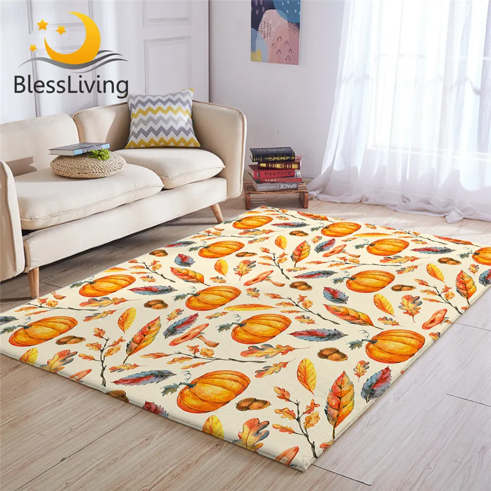 BlessLiving тыквы большой ковер для Гостиная Золотые листья мягкий коврик гриб ковер 122x183 осень фундука Alfombra