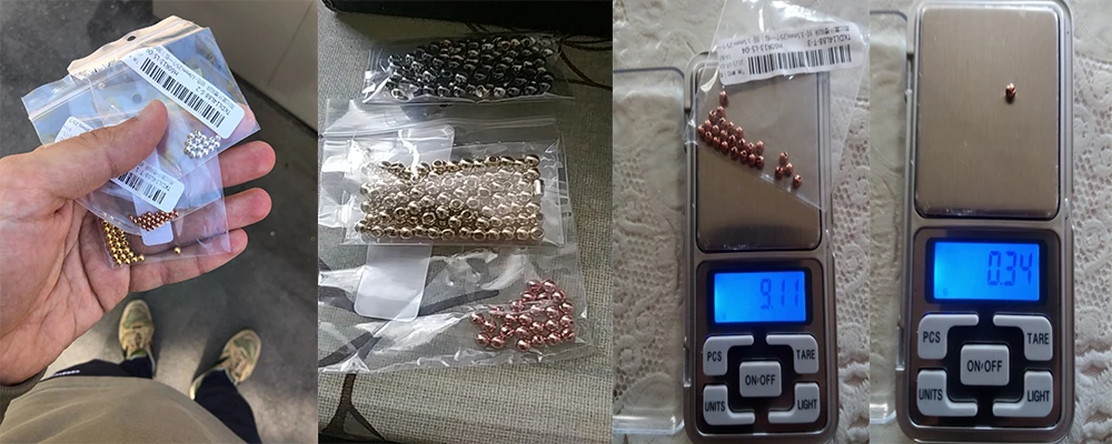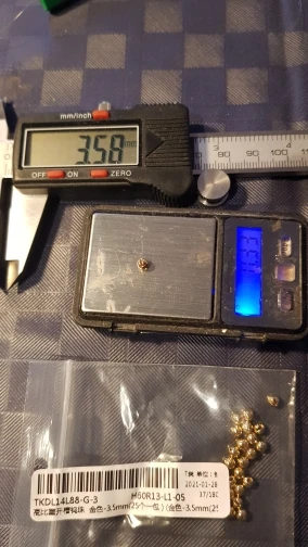 Заказывал 3.5мм, реальный размер 3.35мм. Вес 0.31гр Доставка быстрая, до СПб меньше чем за 2 недели дошло