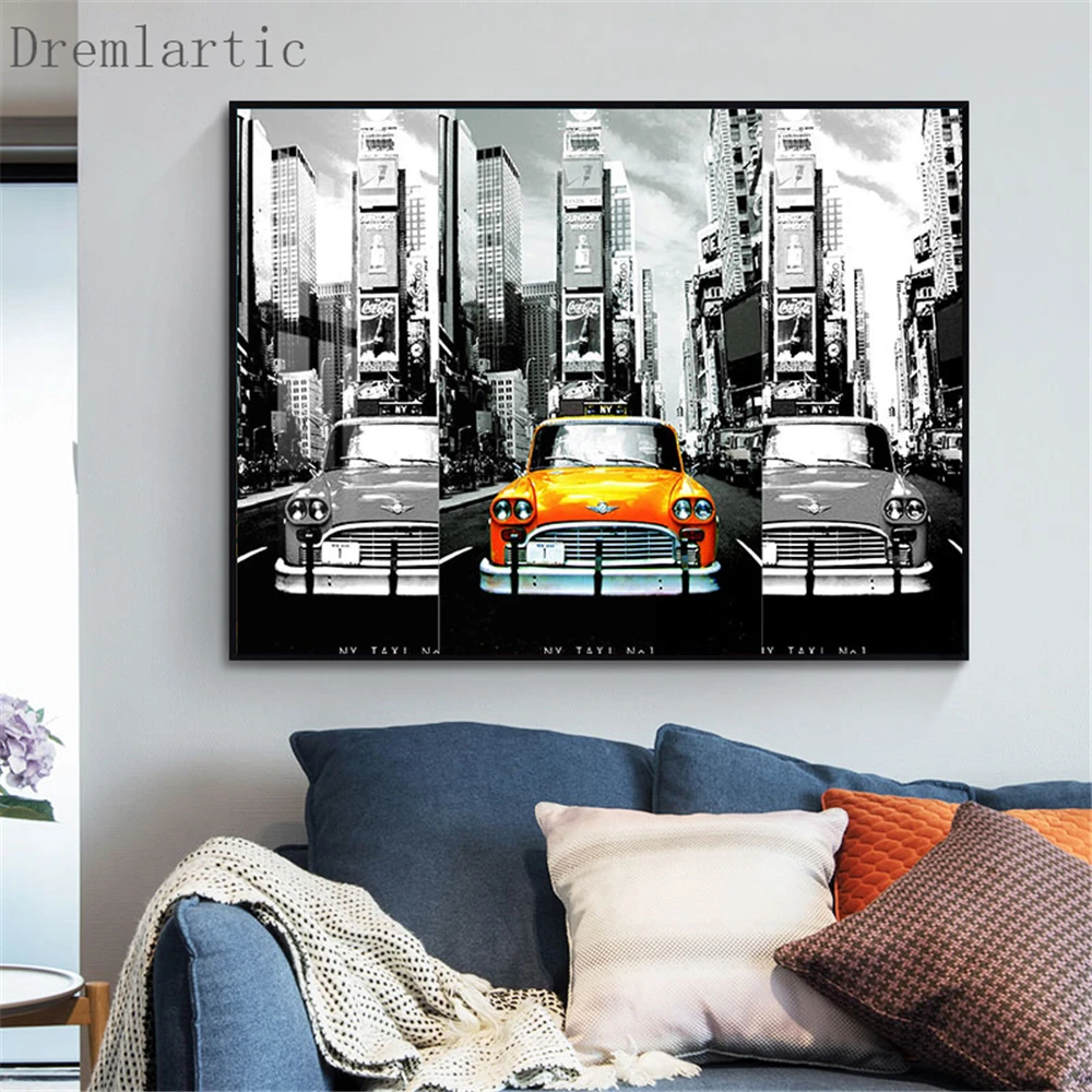 Такси Нью-Йорк холст постер из шелковой ткани современный Стиль принты вечерние дом декор комнаты #20-1005-43 и выше