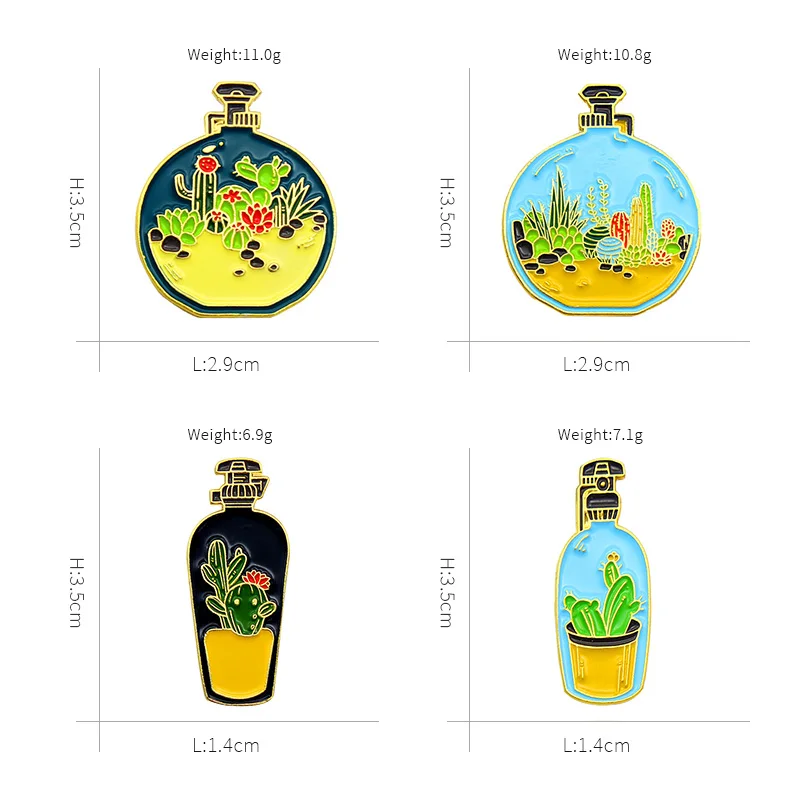 Эмалированные булавки в горшке с изображением кактуса, растения, парфюма, бутылки с распылителем, броши для рюкзака, лацкана, Мультяшные украшения для детей