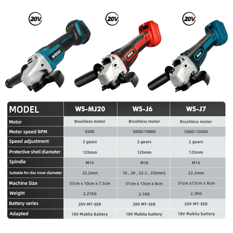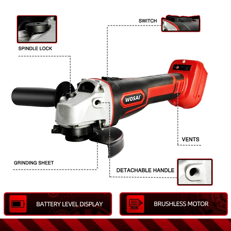 Угловая шлифовальная машина WOSAI, 125 мм, 18 В, С бесколлекторным мотором
