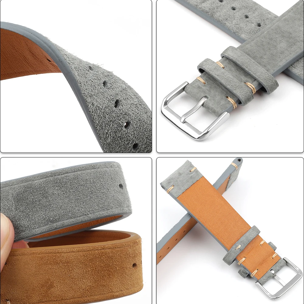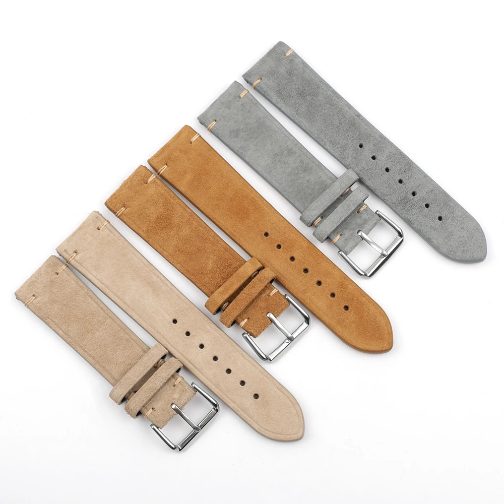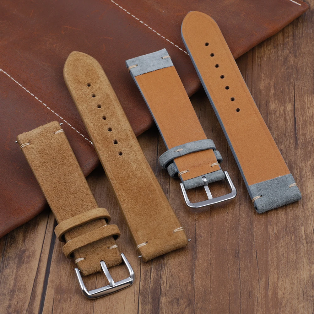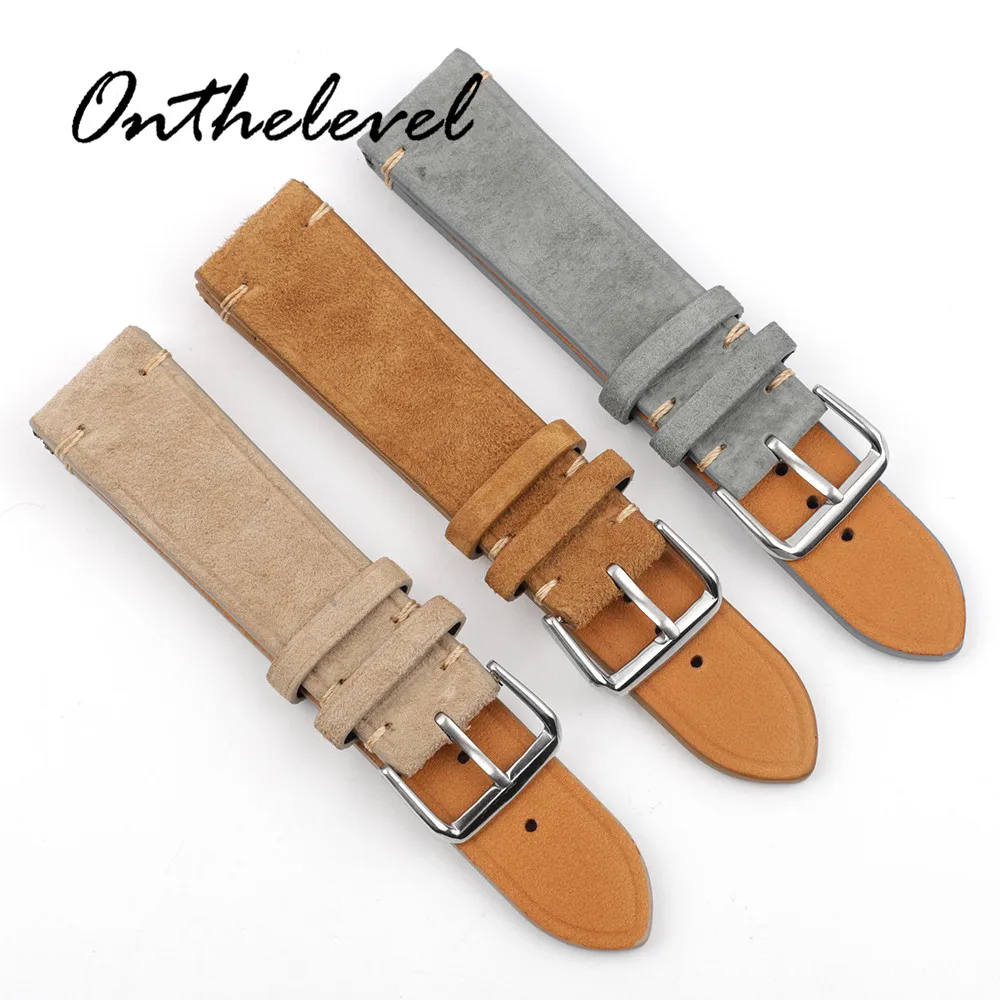 Onthelevel Новый ремешок для часов ручной работы из натуральной замши, кожаный ремешок для часов 18 мм, 20 мм, 22 мм, серый, коричневый сменный ремешок для часов, аксессуары