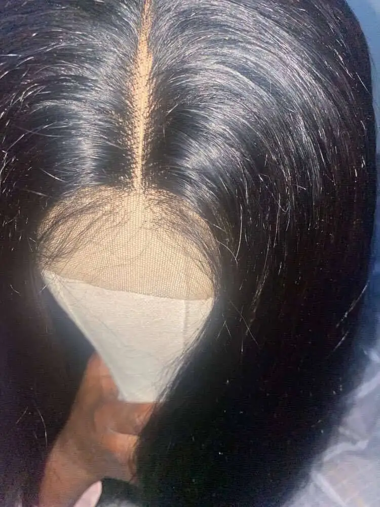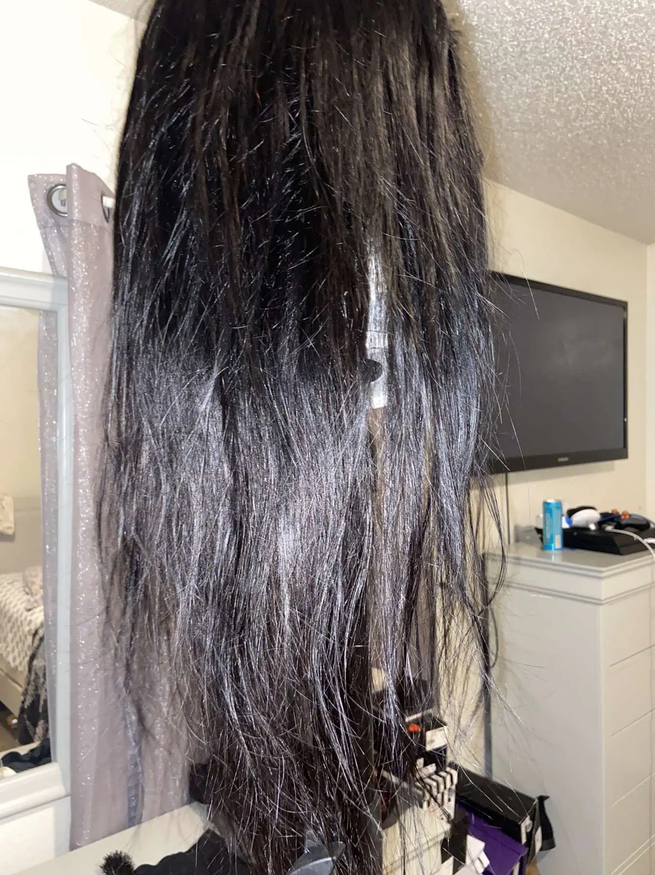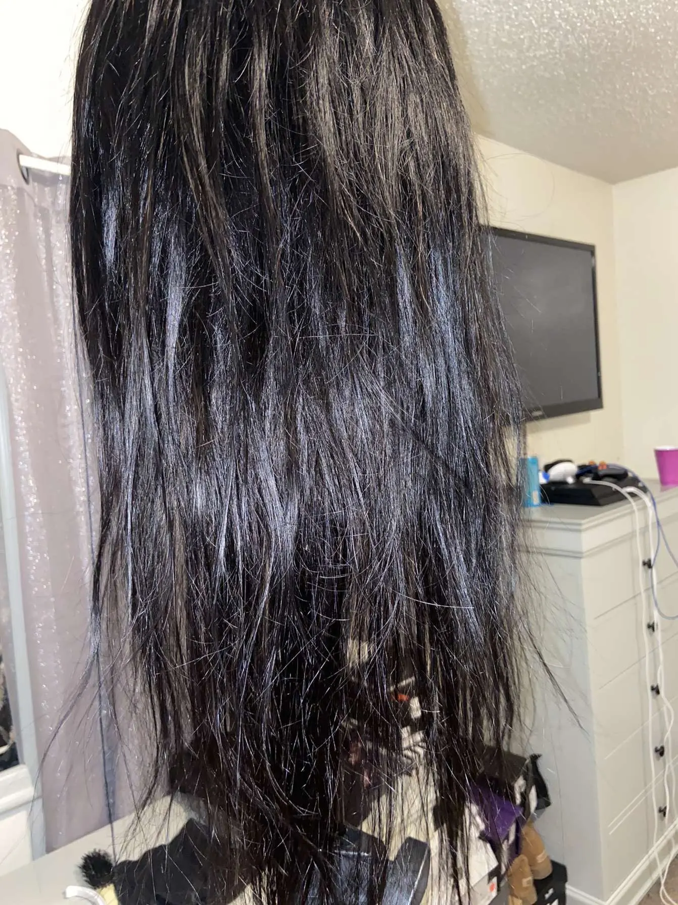 This is the hair I received. This hair has never been worn, I’m simply just in the middle of making a wig. The hair is NOTHING like the reviews show it’s thin and super stingy. 0/10. DO NOT RECOMMEND!