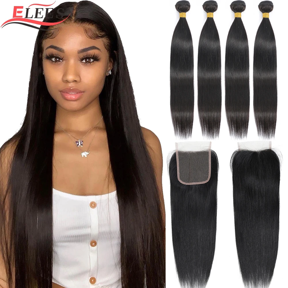 Прямые пучки с застежкой, бразильские волосы, пупряди с застежкой, 32, 34 дюйма, пряди человеческих волос с застежкой, Реми
