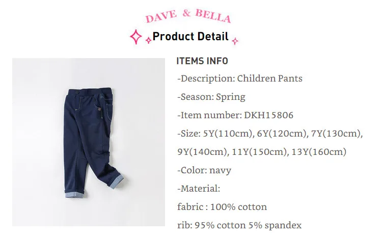 DKH15806 нижнее белье в стиле бренда dave bellaкомплект весенней От 5 до 13 лет, модный спортивный костюм для мальчиков, однотонные штаны с карманами; Детская одежда из бутика, свободный покрой, широкие детские длинные штаны
