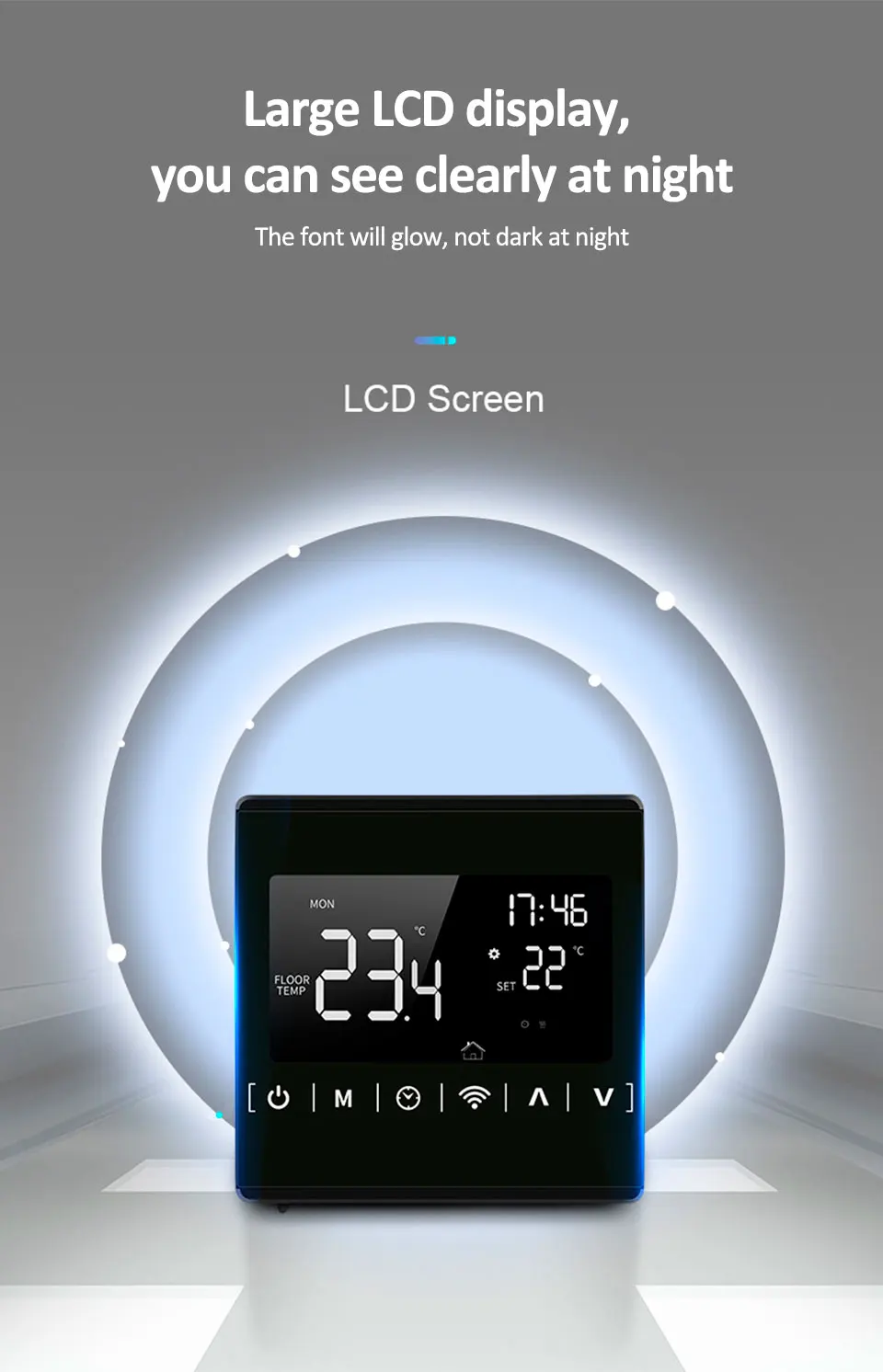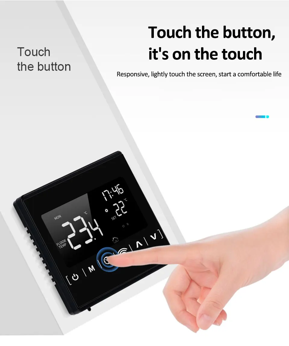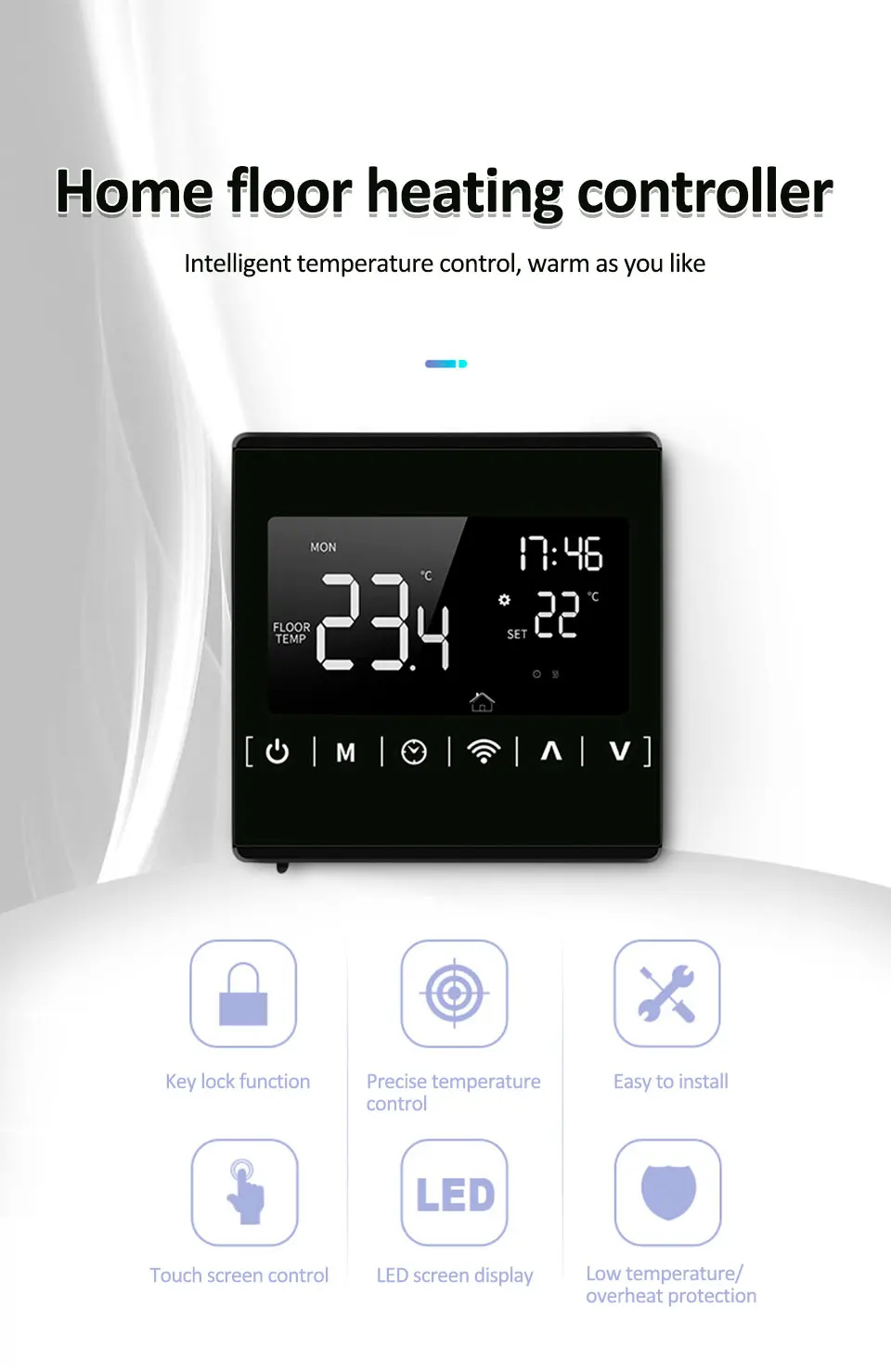 Умный термостат для теплого пола Tuya, Wi-Fi, с сенсорным ЖК-экраном