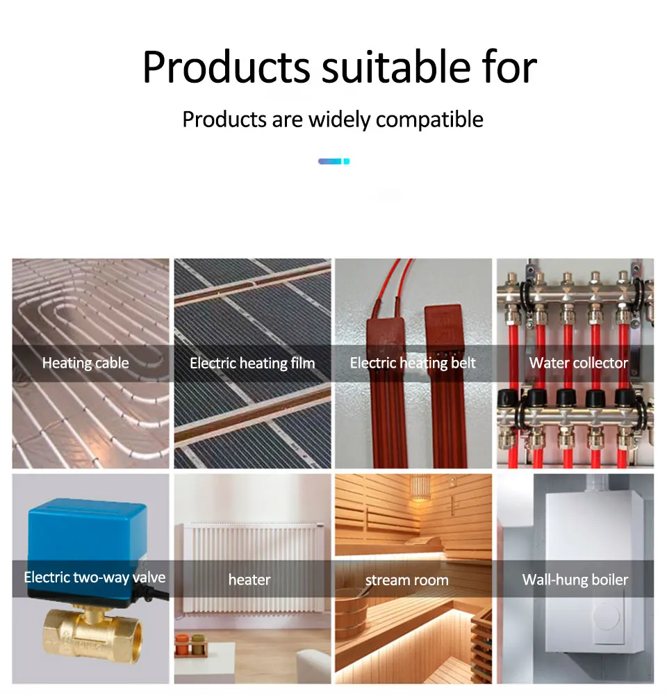 MH1822 тип используется для электрического напольного отопления, например, электрического нагревательного кабеля, электрической нагревательной пленки, электрического нагревательного коврика и других электрических нагревателей.