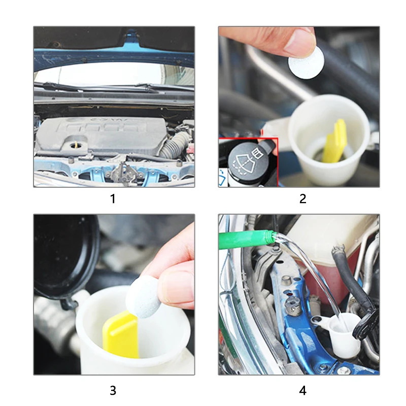 Концентрированные шипучие таблетки для мытья автомобильных стекол, ...
