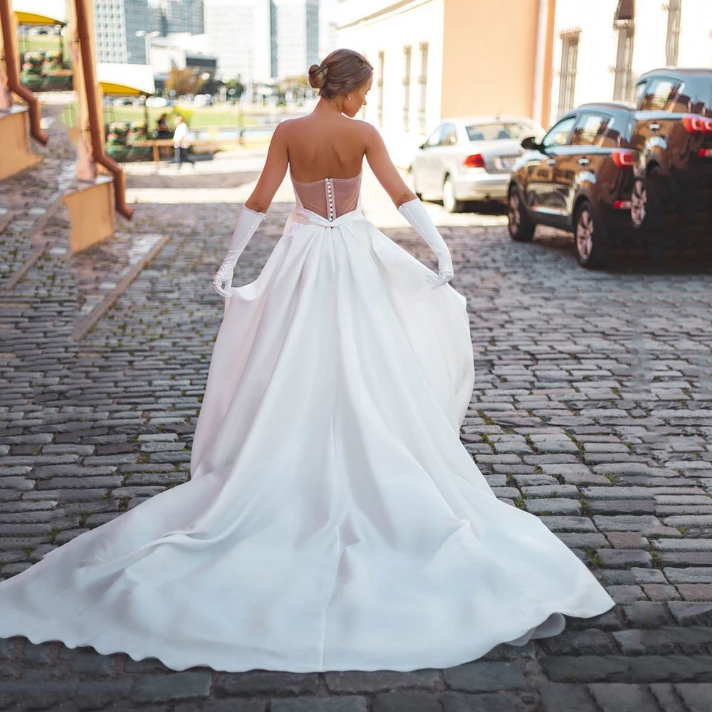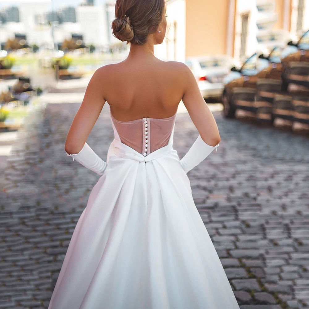 UZN Дубай A-Line свадебное платье Иллюзия спинки Сатиновые Свадебные платья Саудовская Аравия без бретелек Свадебные платья на заказ Внимание: платье не включает перчатки на картинке