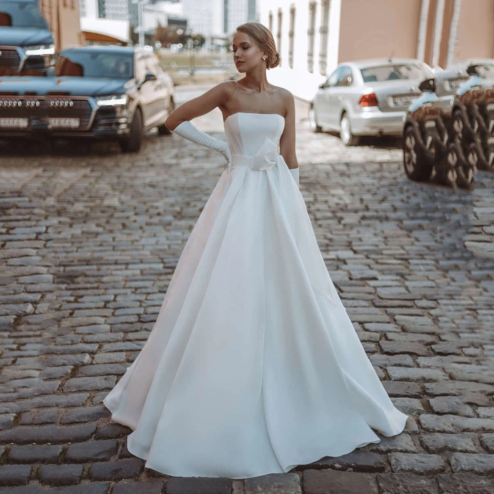 UZN Дубай ТРАПЕЦИЕВИДНОЕ свадебное платье Illustion с низким вырезом на спине Сатиновые Свадебные платья Саудовская Аравия Свадебные платья без бретелек индивидуальный заказ