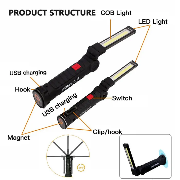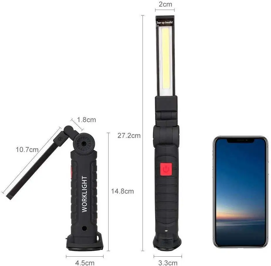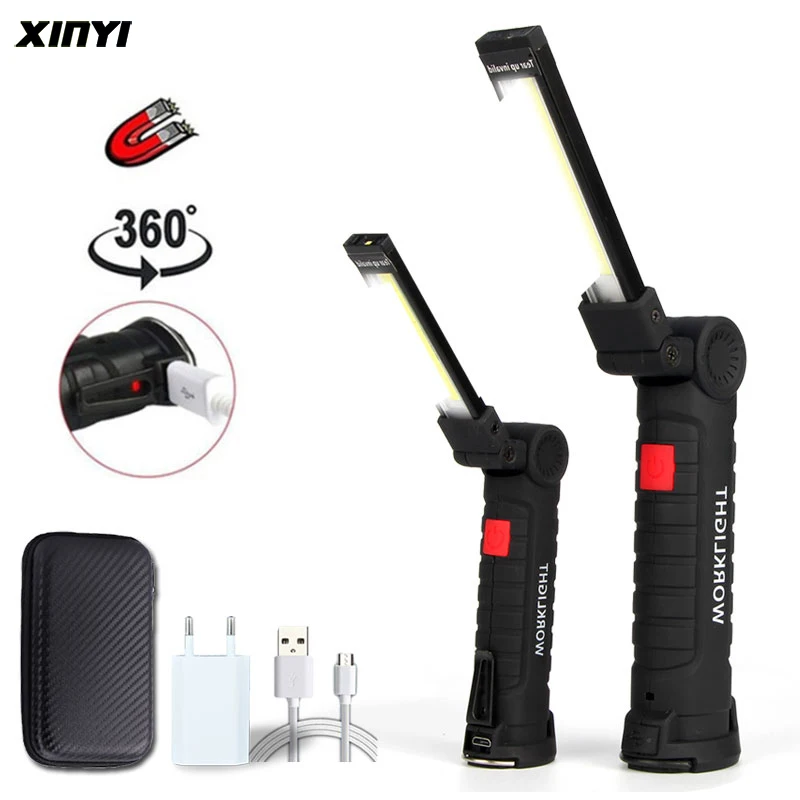 Светодиодный фонарик Torch5 режимов COB, рабочий фонарик, лампы для ремонта автомобилей, USB, перезаряжаемые, магнитные, вращающиеся на 360 градусов портативные фонари