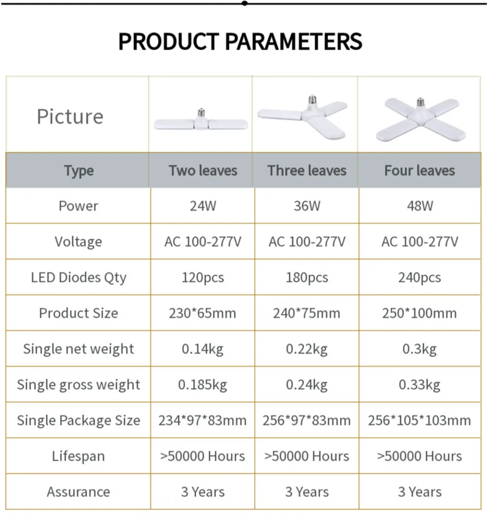 ХарактеристикиTwo Three Four leaf fan-shaped plant lights