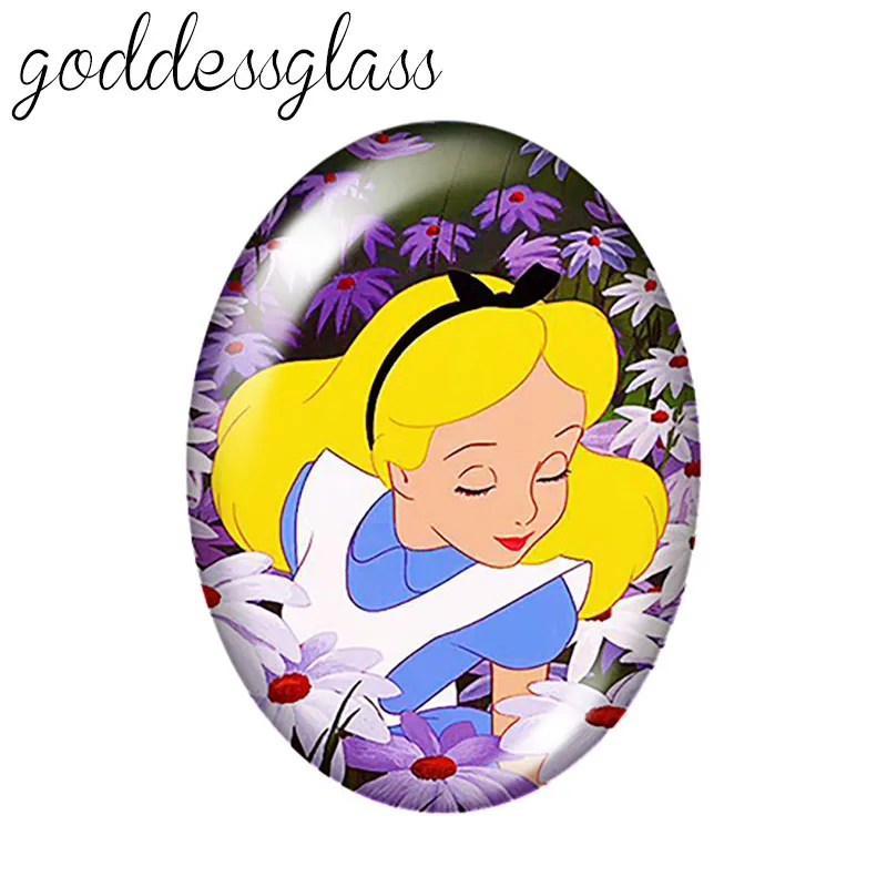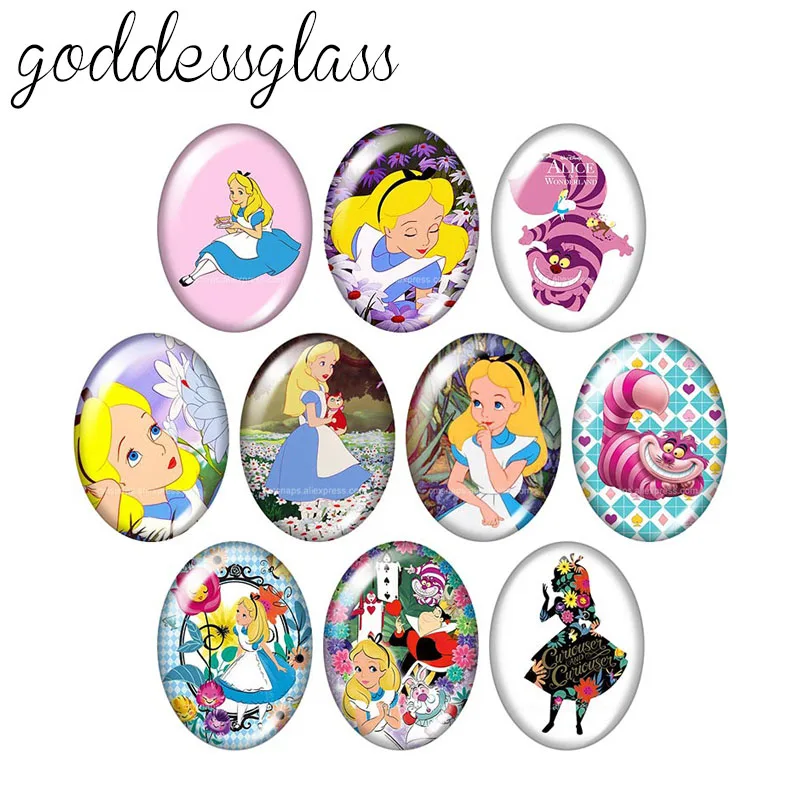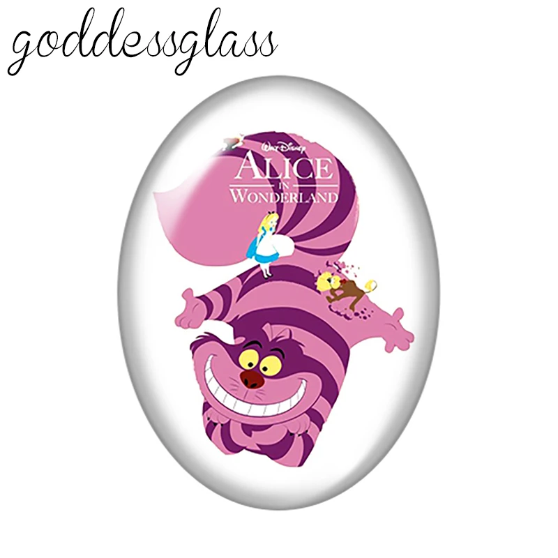 Принцесса Чеширский Кот из Алисы 10 шт, смешанные цвета, 13x1 8 мм18x2 5 мм30x40 мм Овальный фото кабошоны разрисованные изделия из стекла с плоской задней частью браслетов украшения своими руками