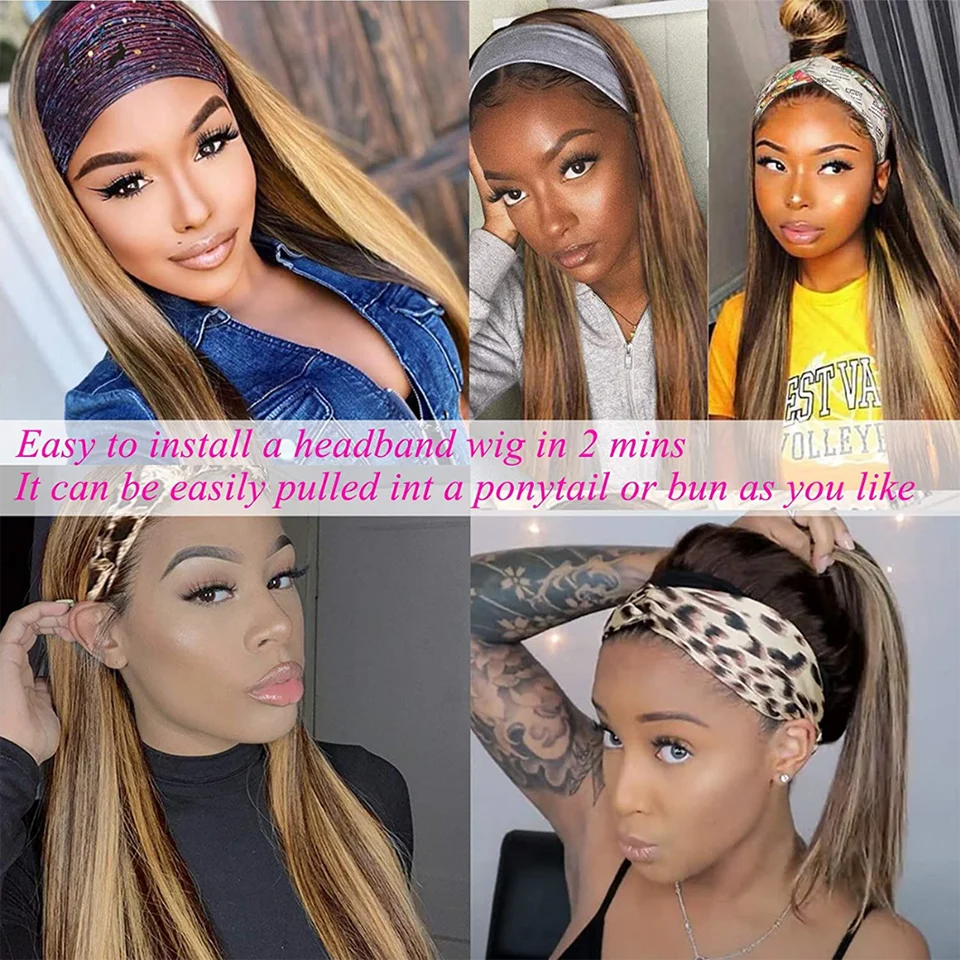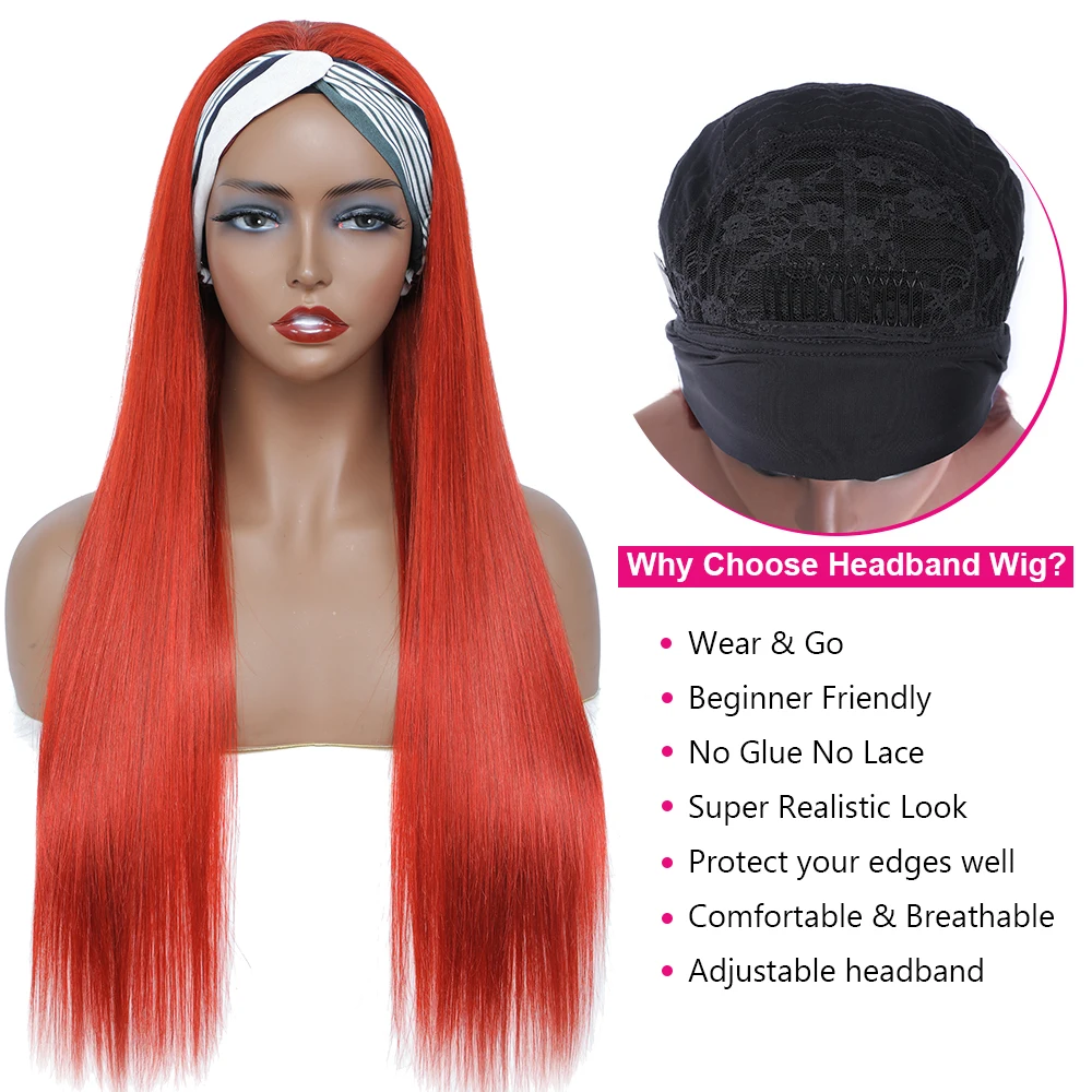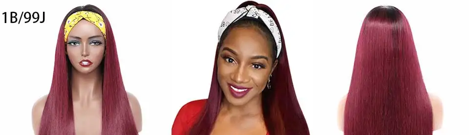 Бразильские натуральные Выделите парик 1B99J кости прямой парик с головной повязкой имбирь оранжево-Цвет парик с эффектом деграде (переход от темного к Blone гладкая парики из натуральных волос