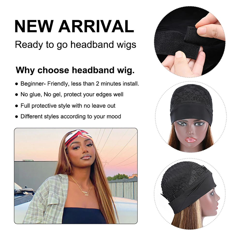 Nicelight бразильские прямые волосы парик с головной повязкой синте...