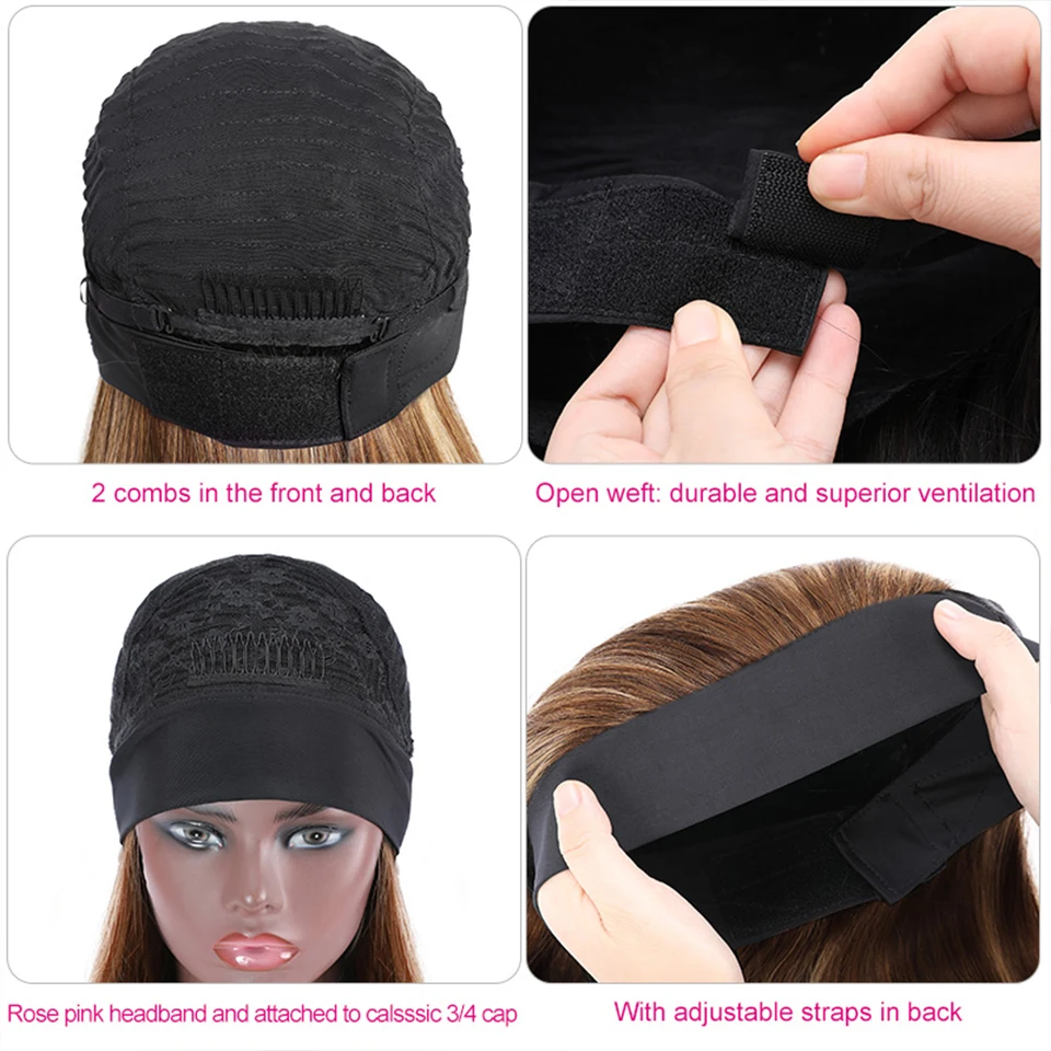 Бразильские прямые волосы боб эластичный парик с головной повязкой ...