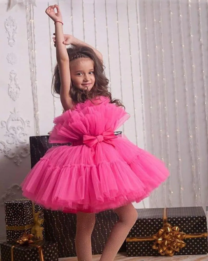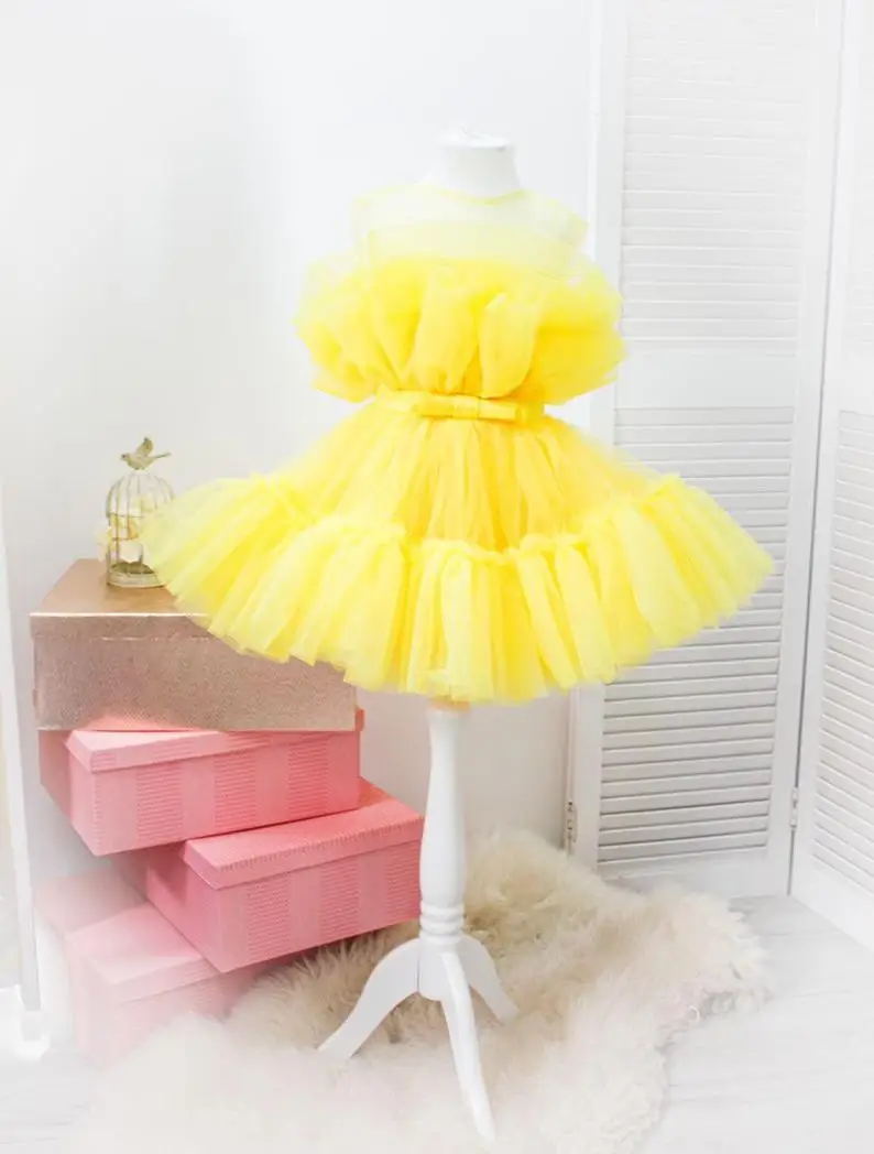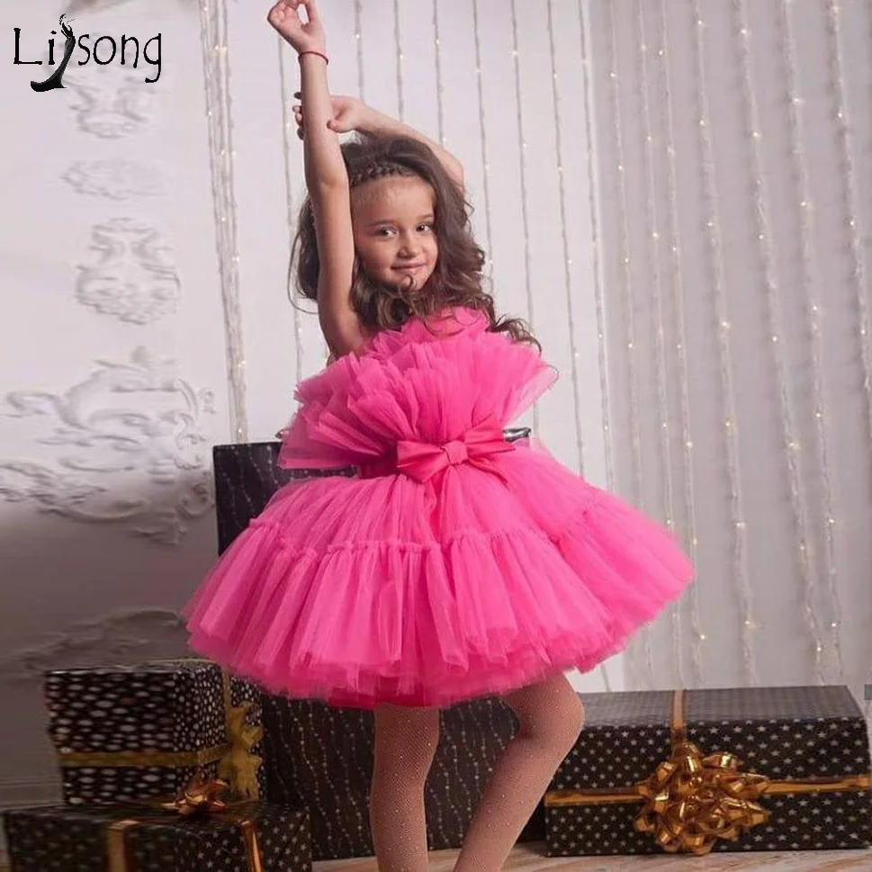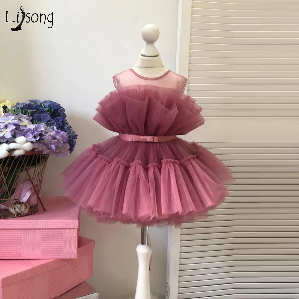 Красивое Тюлевое детское платье, пышные яркие короткие платья с цветами для девочек, милые детские платья на заказ для свадьбы и вечеринки