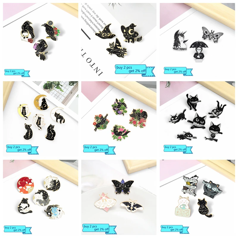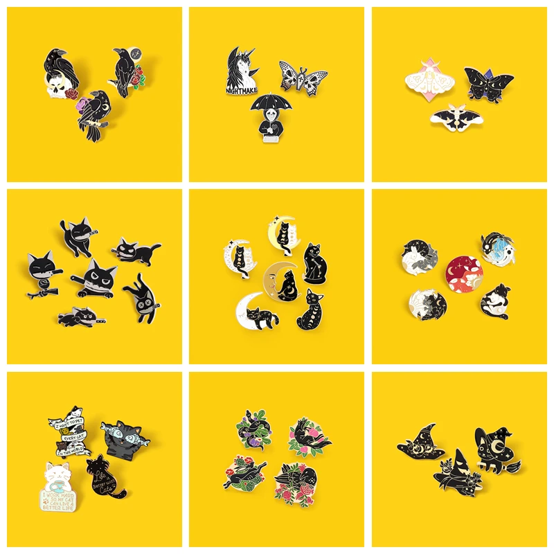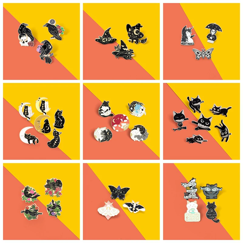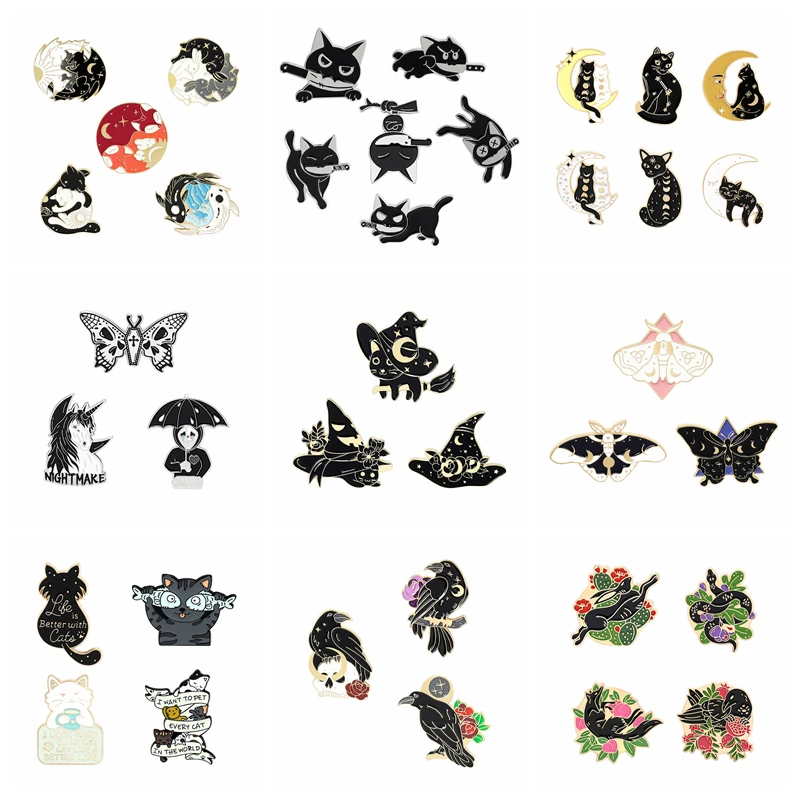 Эмалированный значок на лацкан в виде пары животных, ведьмы, кошек, мешочек для брошек, солнце, луна, лиса, кои, кролик, летучая мышь, Мотылек, готический значок с Луной, ювелирные изделия, подарок