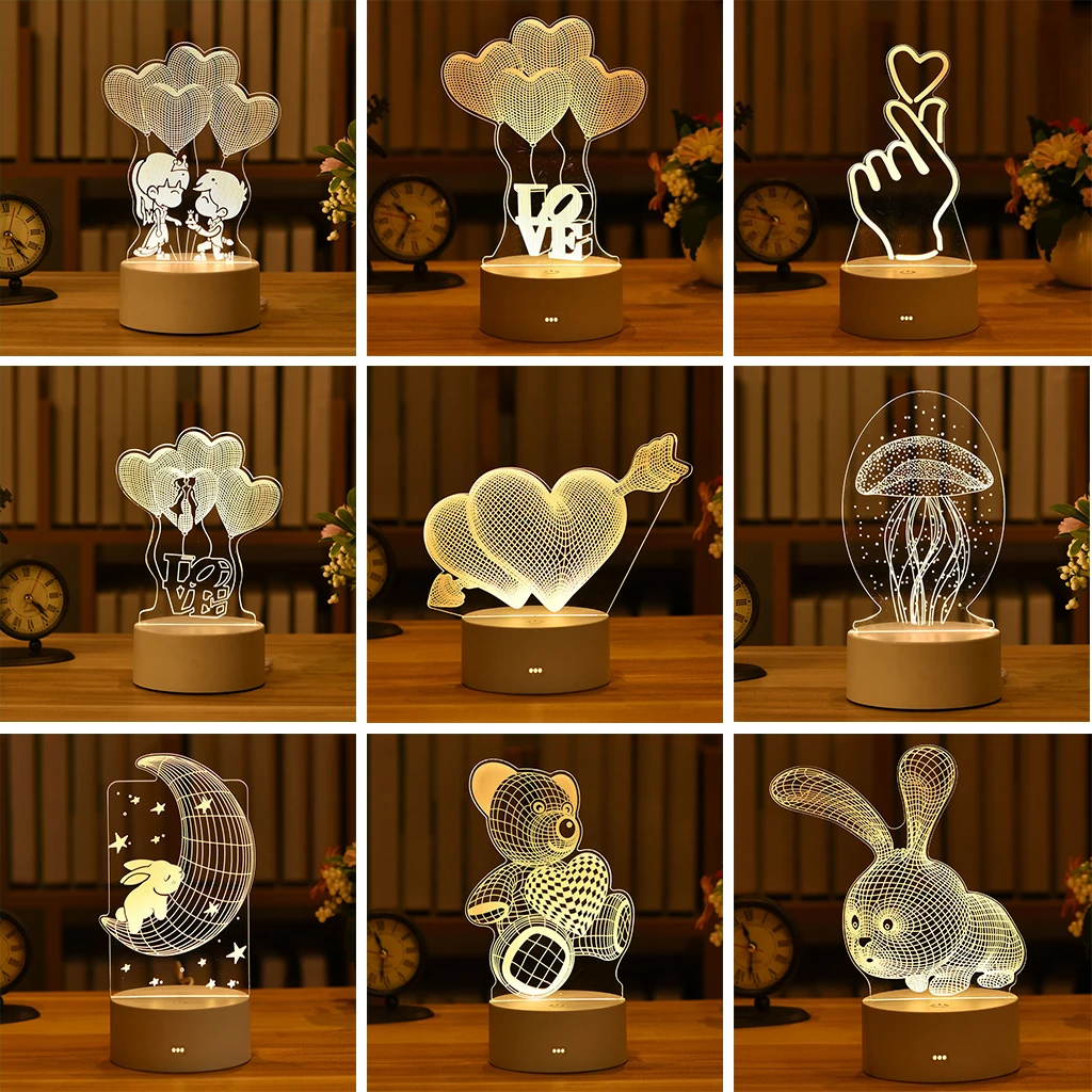 Ночсветильник 3D Акриловый светодиодный, подарок на день Святого Валентина, свадебное украшение, украшение для детского праздника, дня рождения, Пасхи, кролика