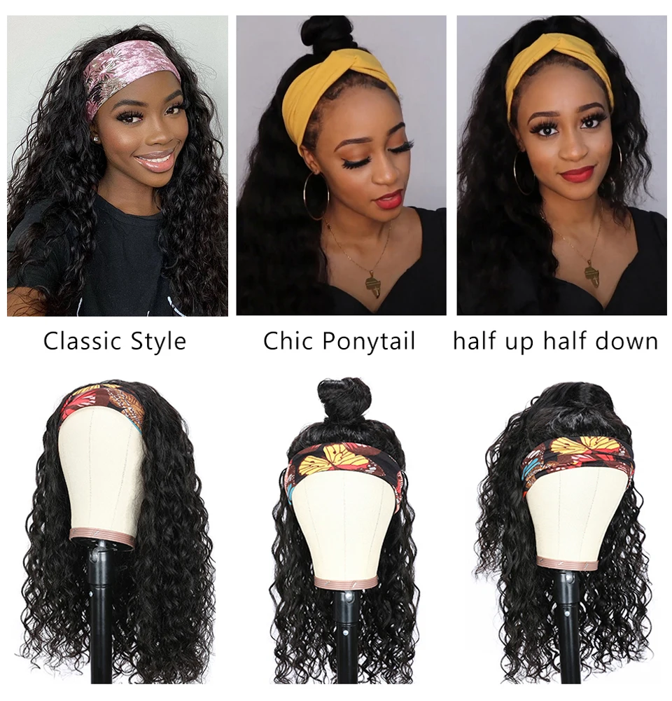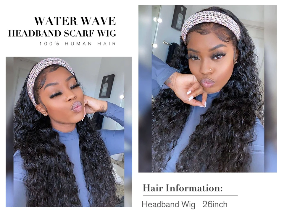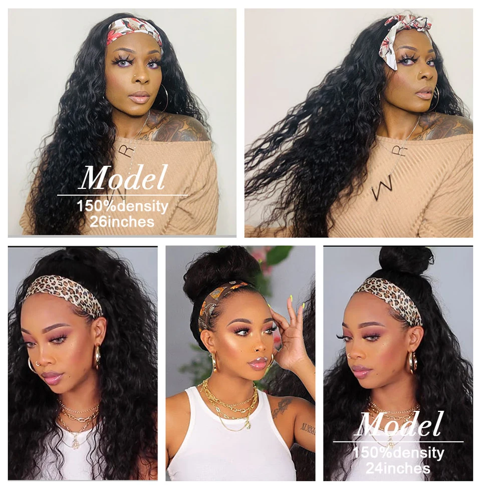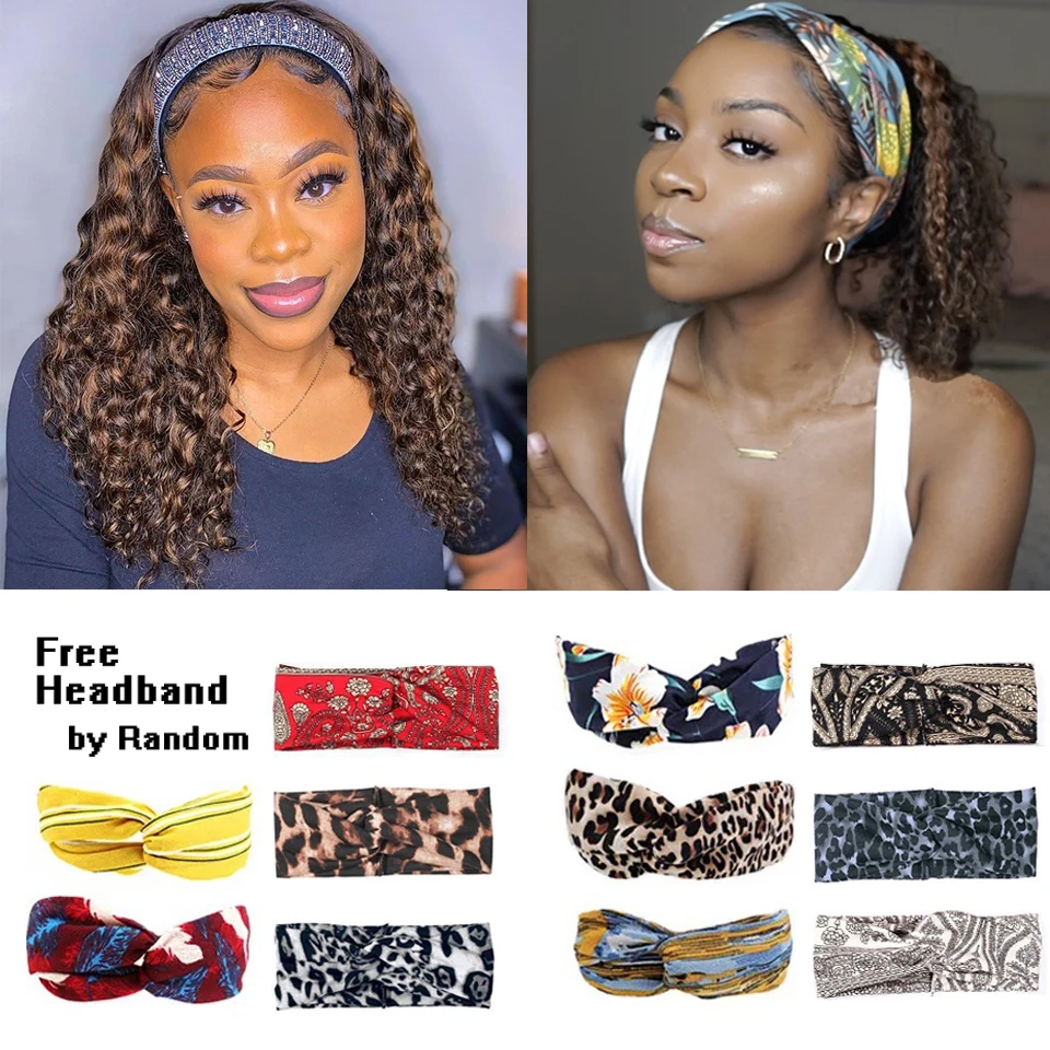 Бразильские волнистые парик с головной повязкой человеческие волосы...