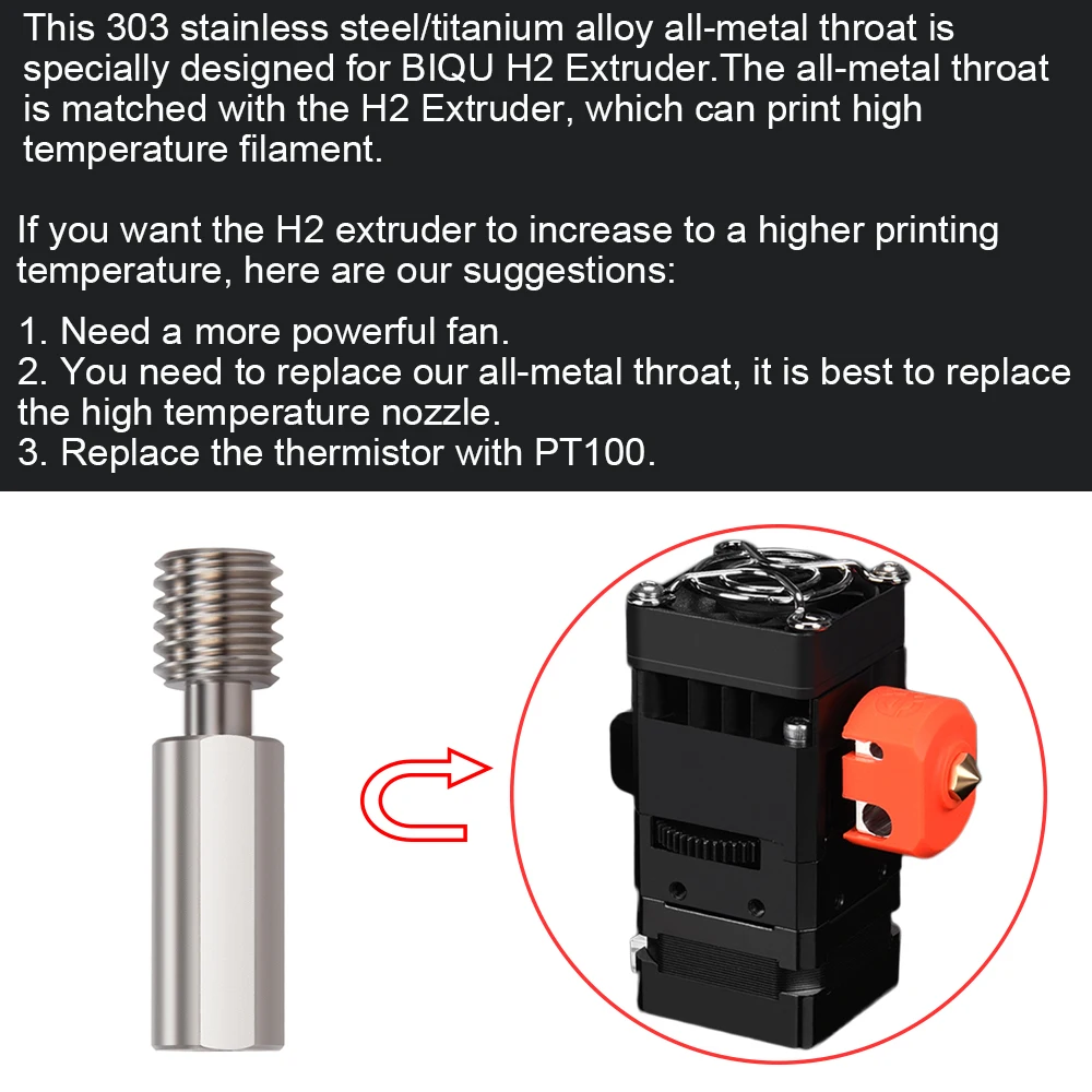 Крошечная нержавеющая сталь 2,5 мм на 2,0 мм, входящая в экструдер, очень тонкая и может сгибаться во время слишком высокой печати. Перезаказ этой части также очень дорогой, эта концепция хороша, когда все работает хорошо, одна проблема, и вы не на месте. Я хотел бы предложить вам заказать напрямую другие трубы для разбивания тепла, чтобы избежать простоя производства.