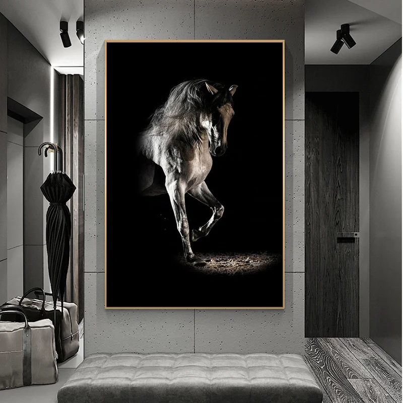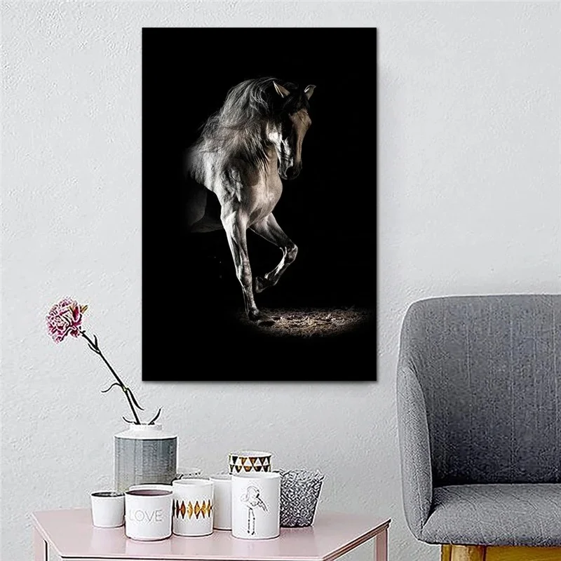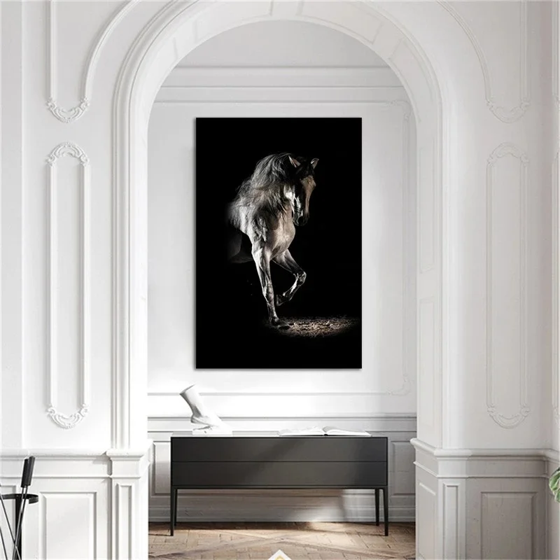 Черная лошадь фотография холст фото печать современные животные Холст Живопись Домашний декор настенные картины без рамки