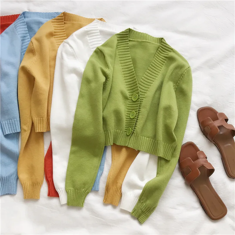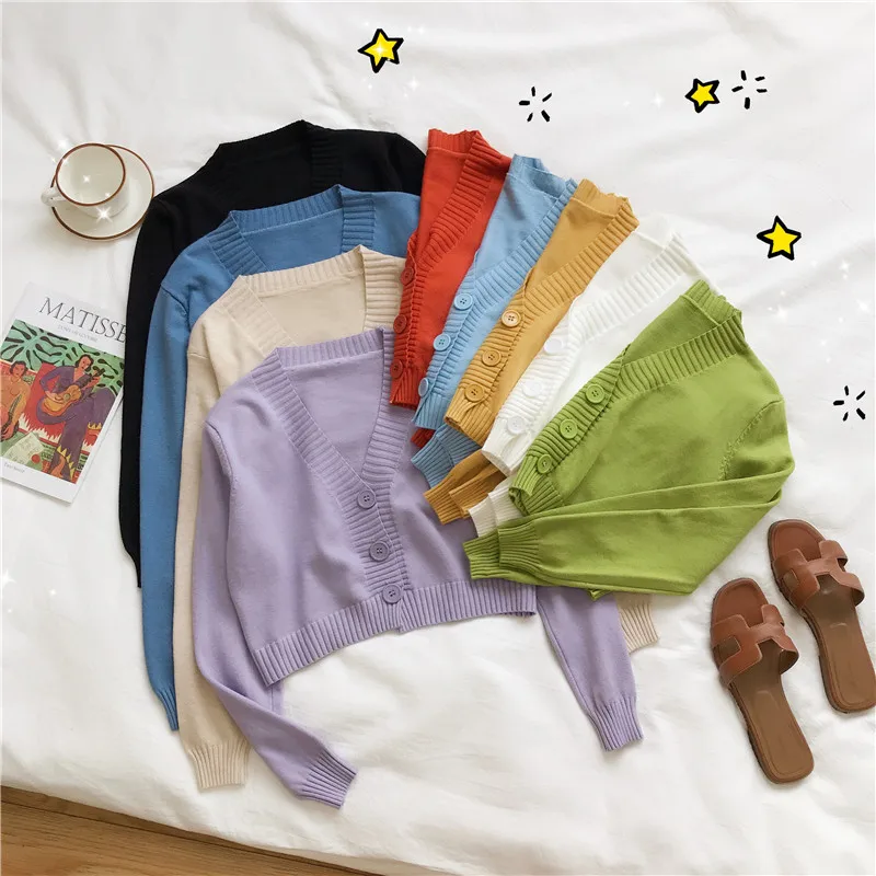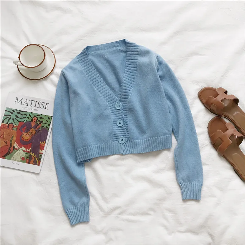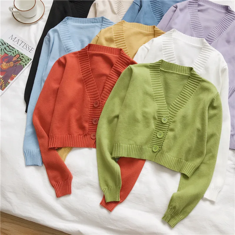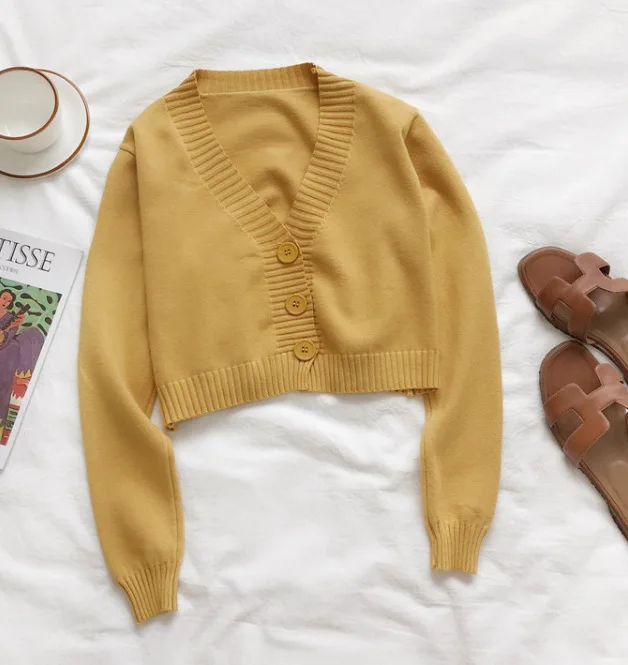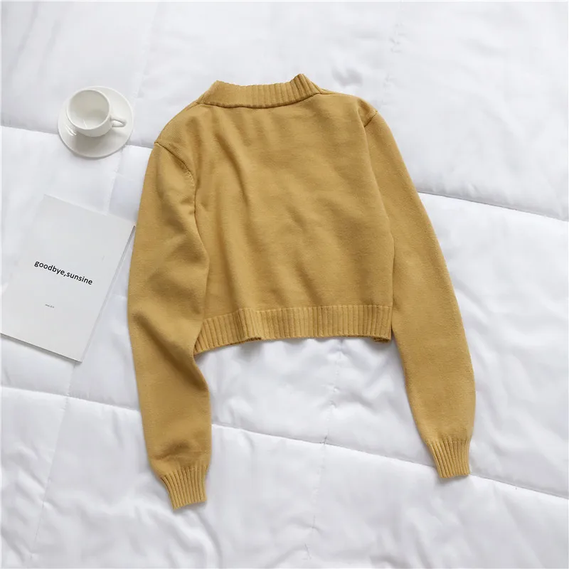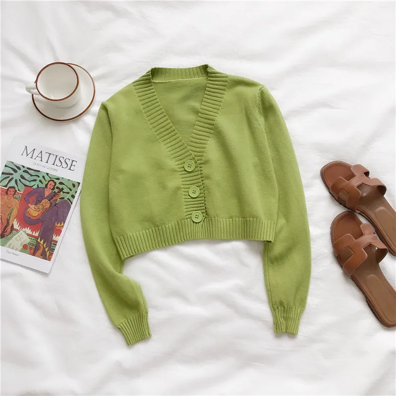 Женский укороченный кардиган с V-образным вырезом и длинным рукавом