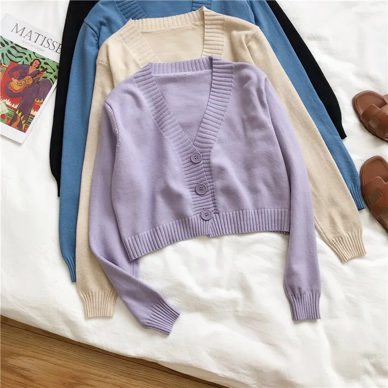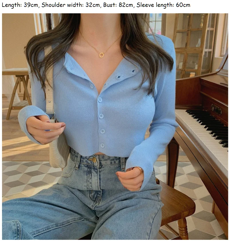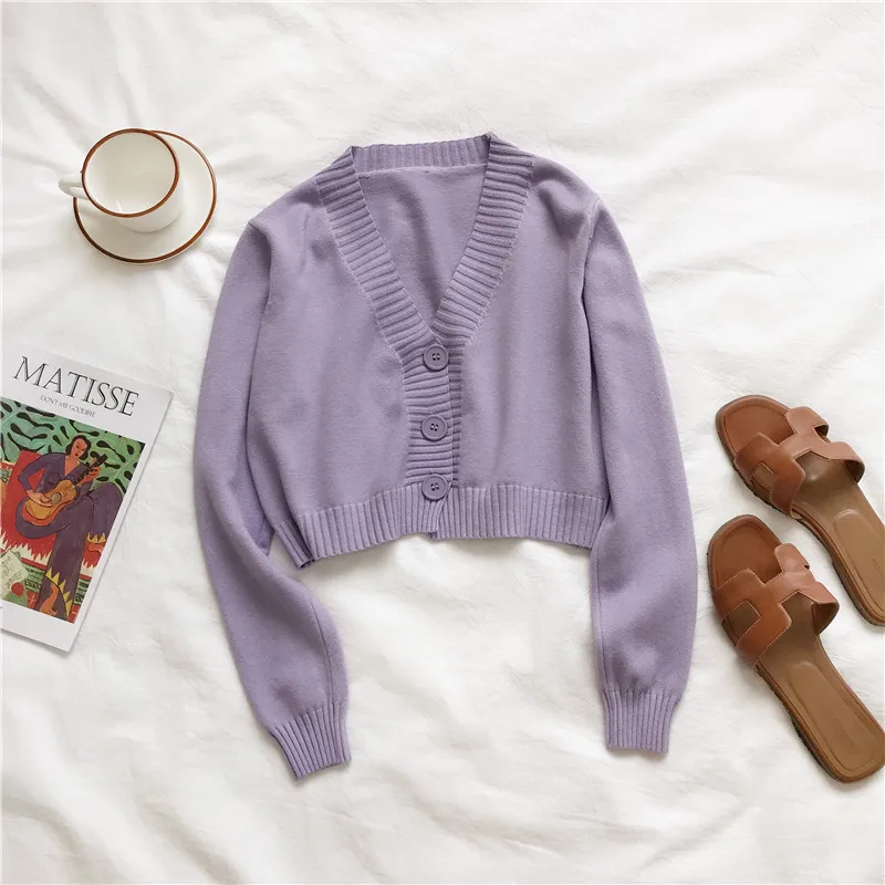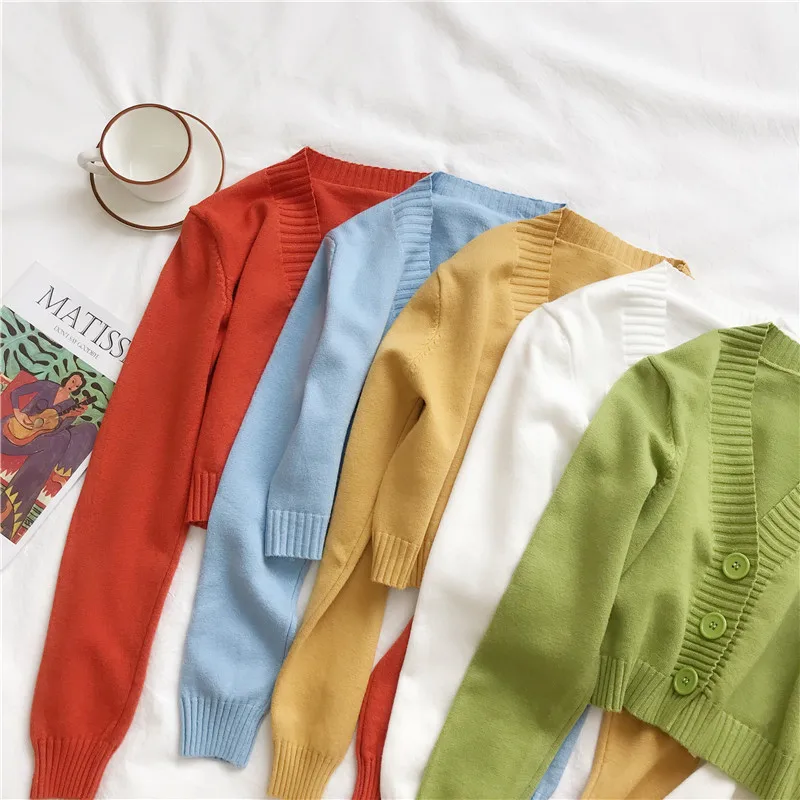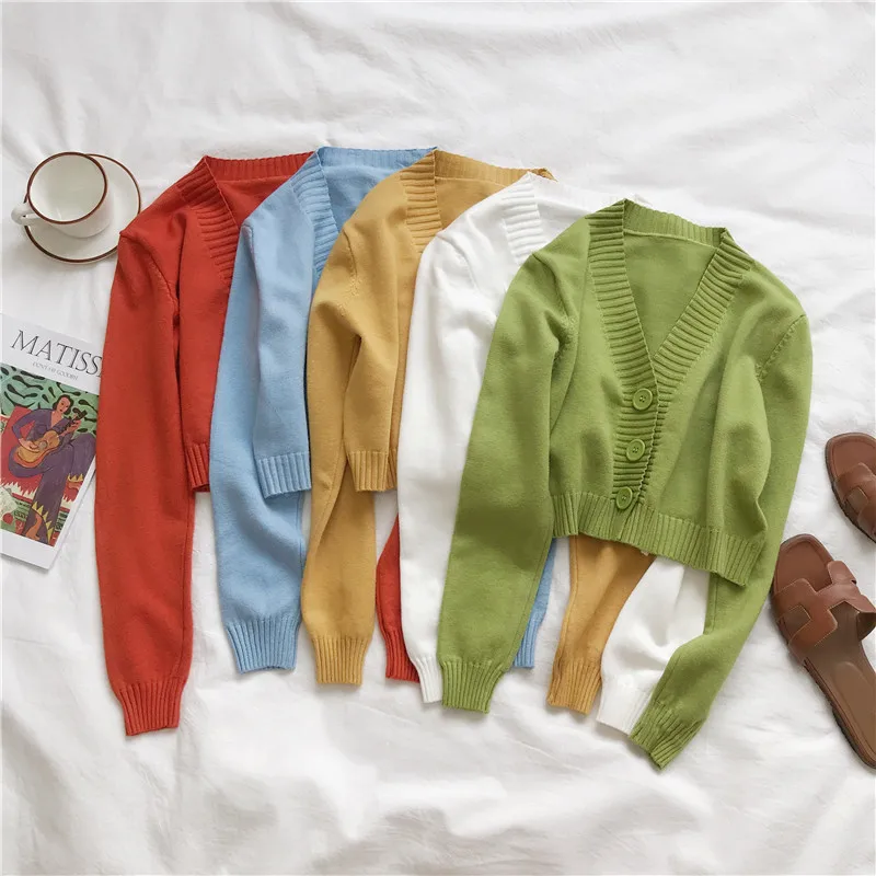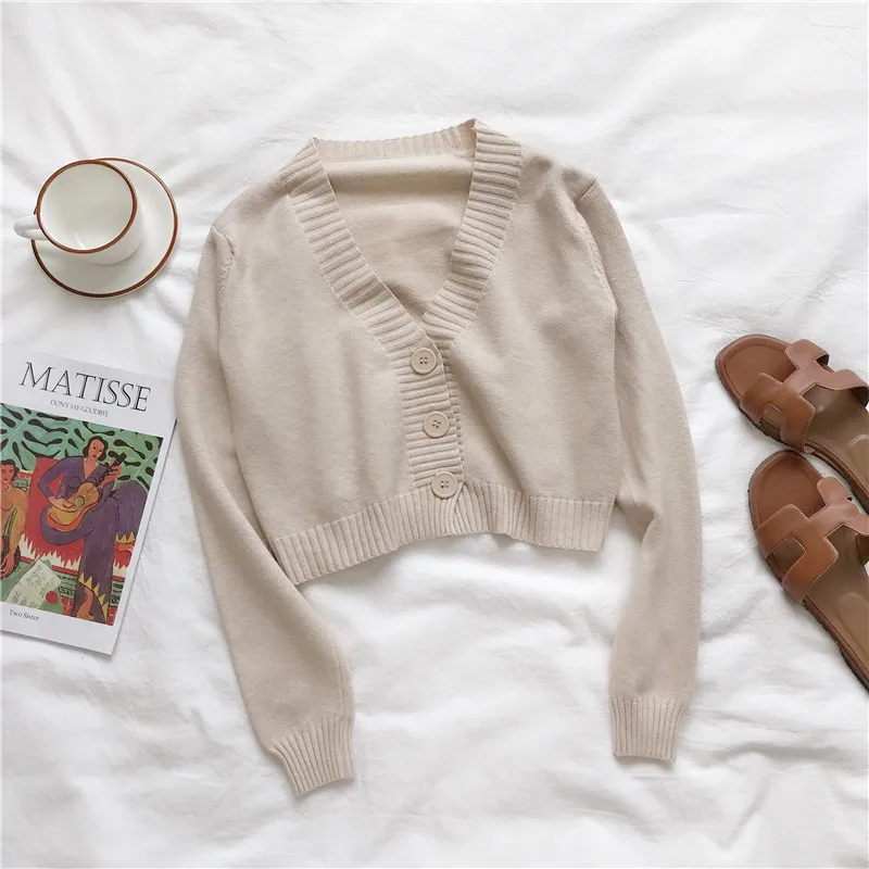 Женский укороченный кардиган с V-образным вырезом и длинным рукавом