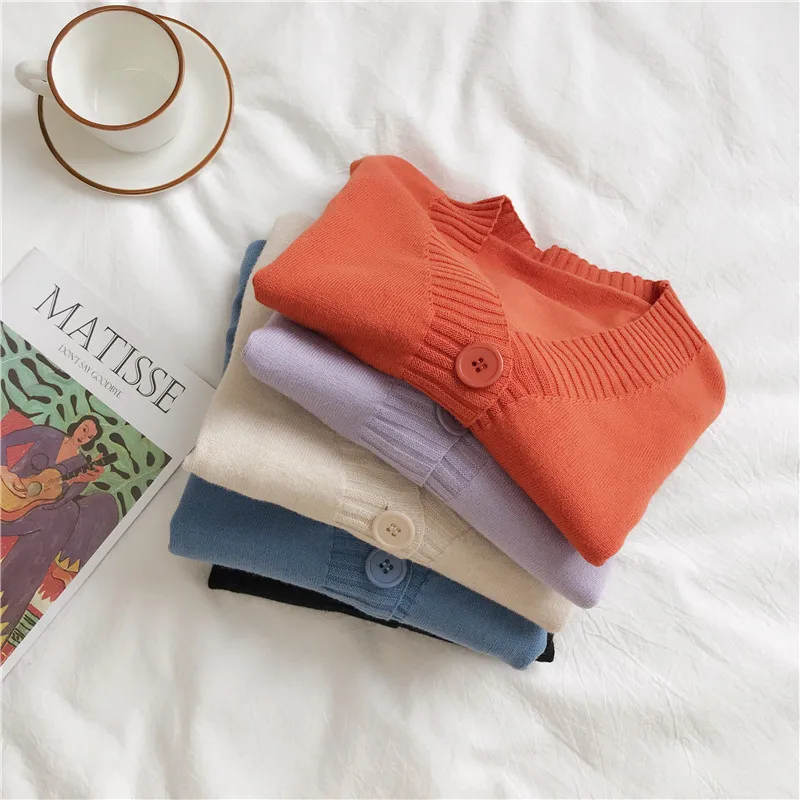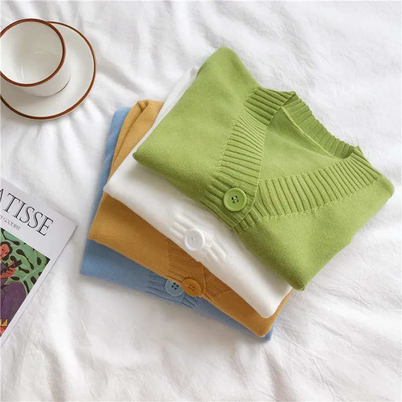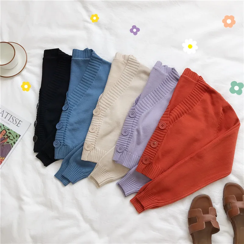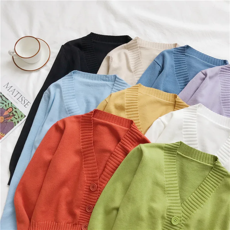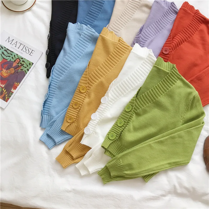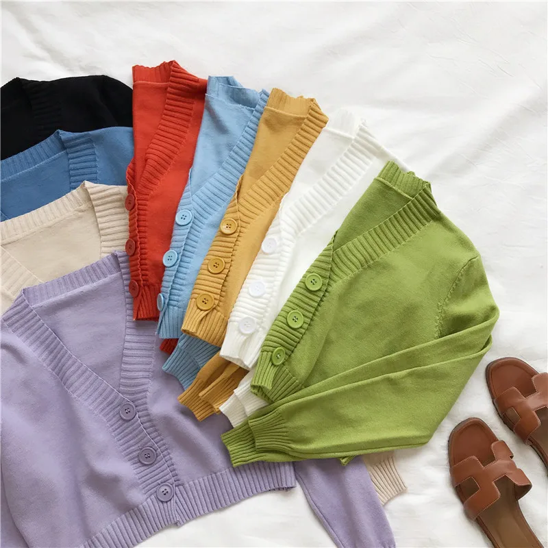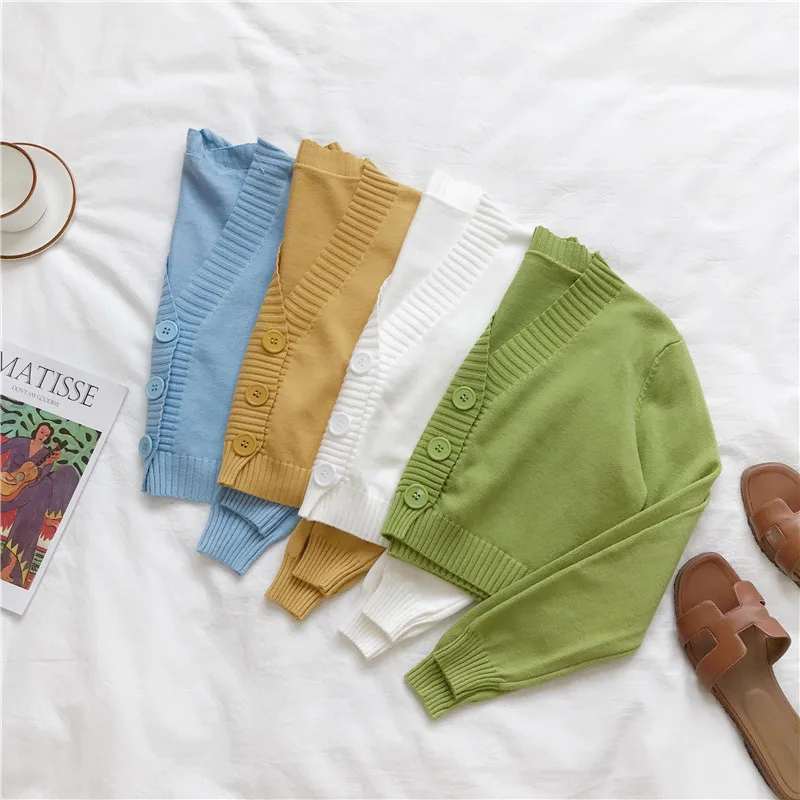 Женский укороченный кардиган с V-образным вырезом и длинным рукавом