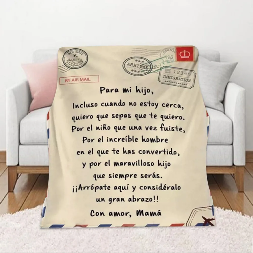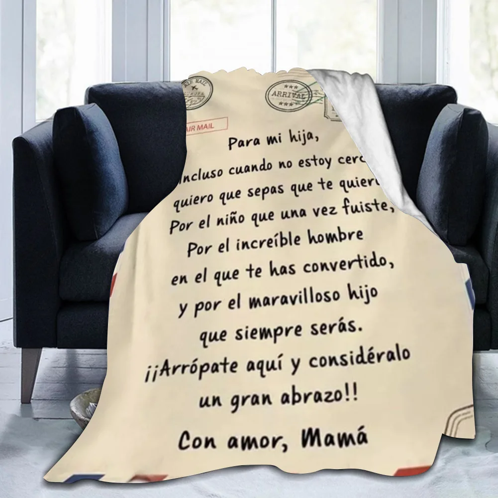 Зимнее теплое мягкое одеяло из флиса с надписью «Мама-Моя дочь-сын» на испанском языке для кровати и дивана