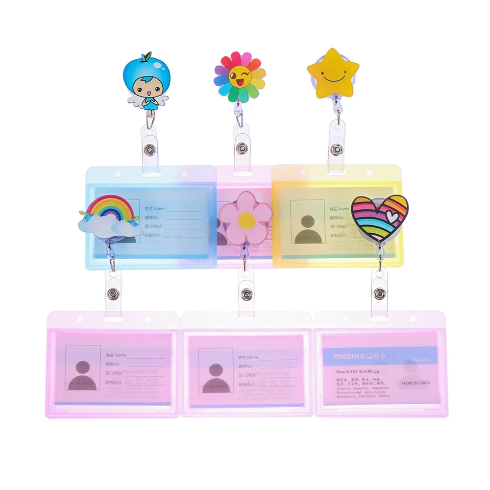 Милый мультфильм ID значок держатель с выдвижной катушки металлический зажим визитная карточка именные метки значок держатели офисные принадлежности