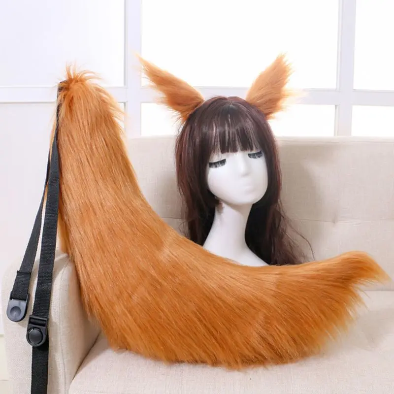 Пояс с лисьими ушками и хвостом, регулируемый пушистый повязка на г...