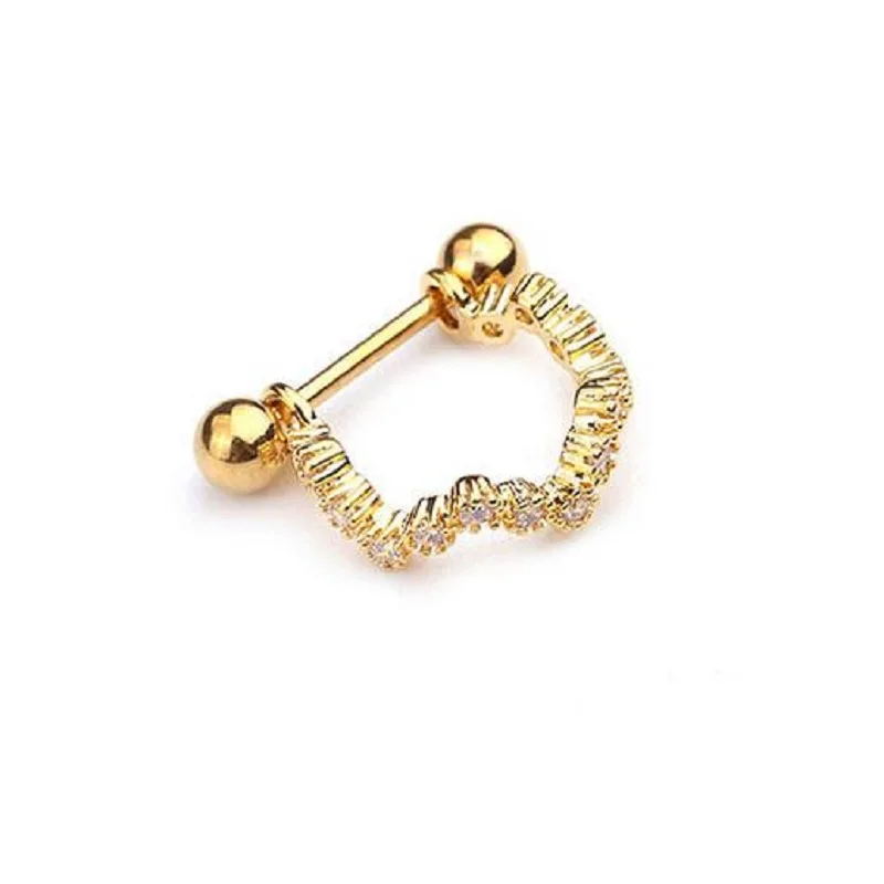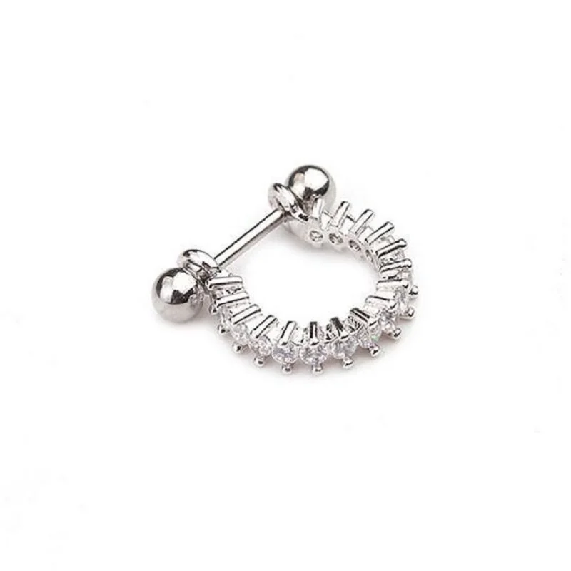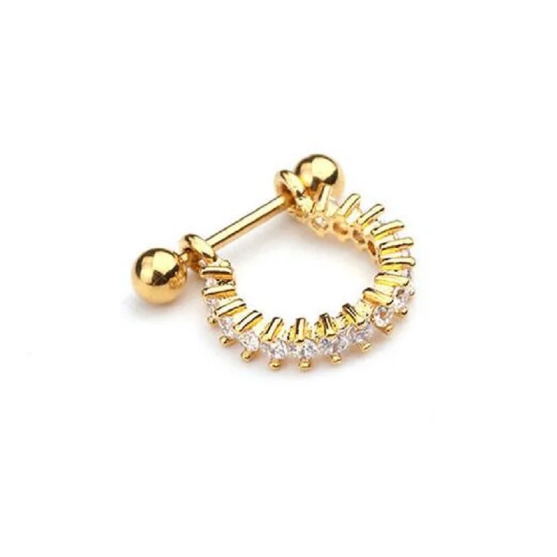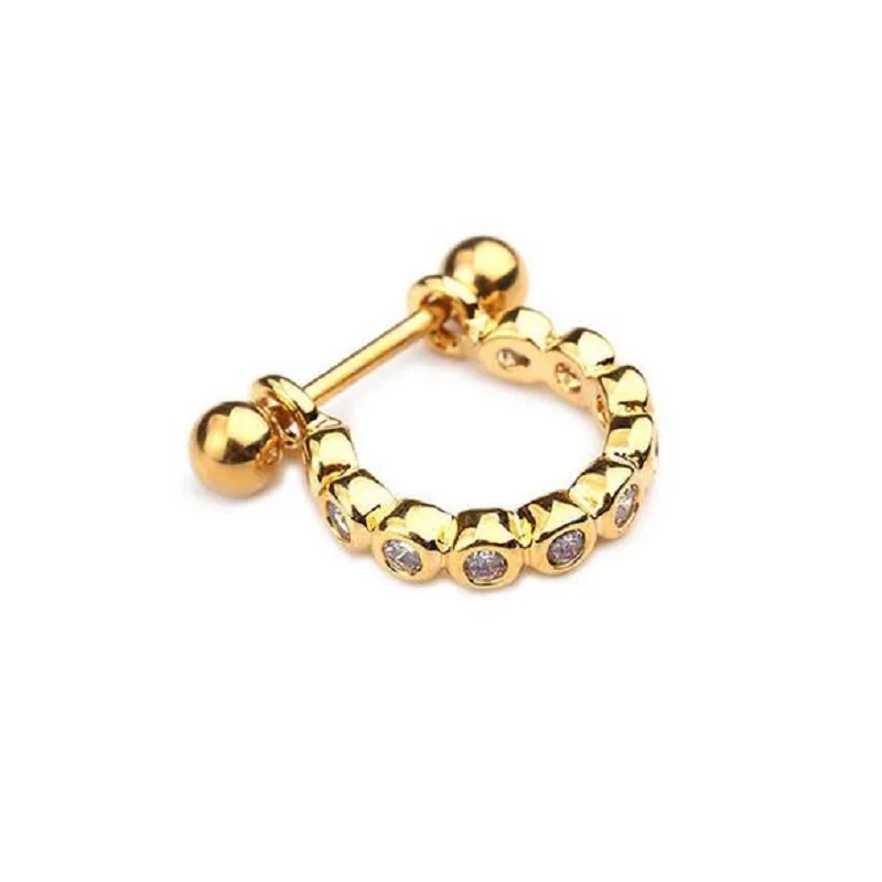 Серьга-кольцо с фианитом для пирсинга уха, хрящевая спираль, ювелирные изделия для пирсинга, цвет золотосеребро, штанга нержавеющая сталь, 1 шт.