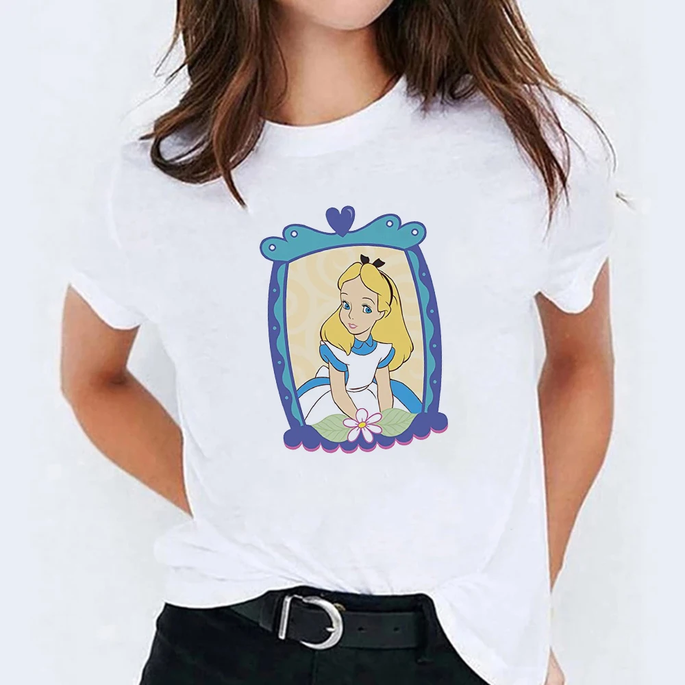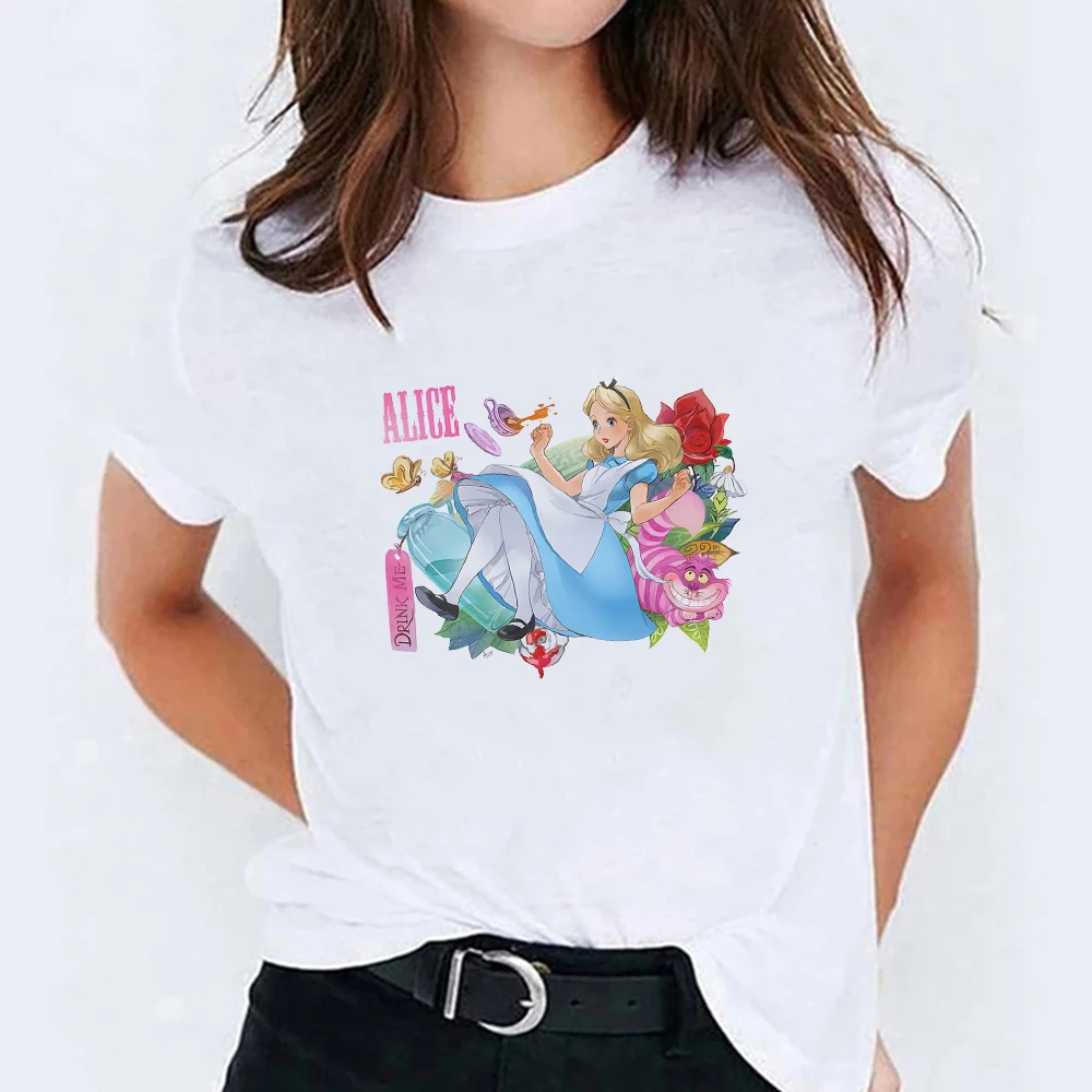 Футболка женская с принтом Алиса в стране чудес и круглым вырезом