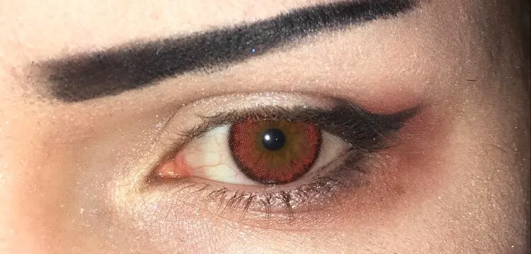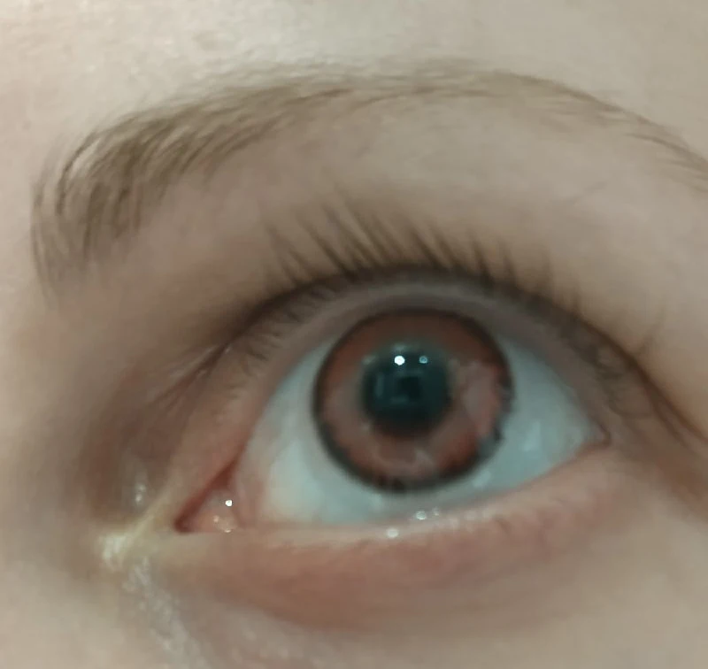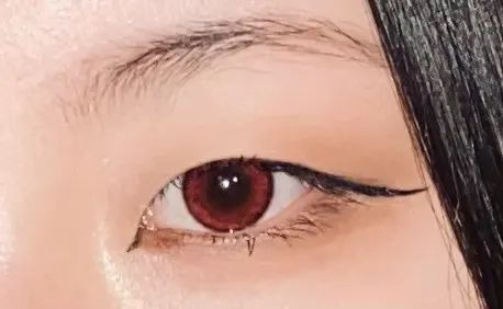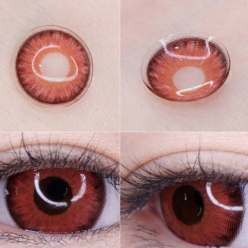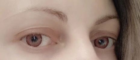 Цвет очень прозрачный и дырка возле зрачка слишком большая. У меня серые глаза (не темные), но их очень сильно видно через линзу. По факту она только затемняет края радужки и даёт красный оттенок. Короче, совсем не так как на заявленных примерах в магазине. Немного разочарована