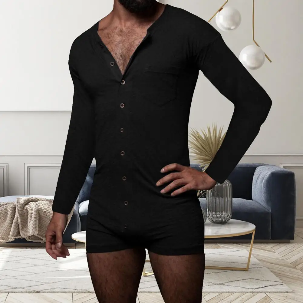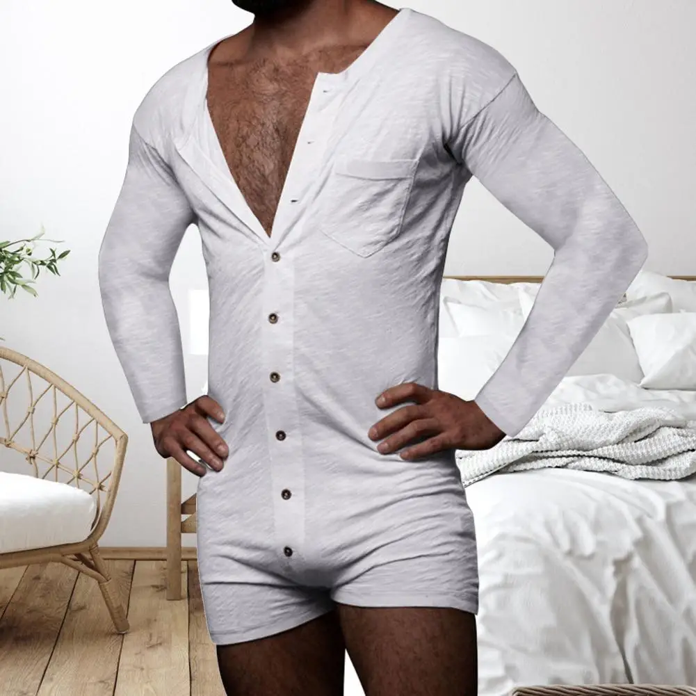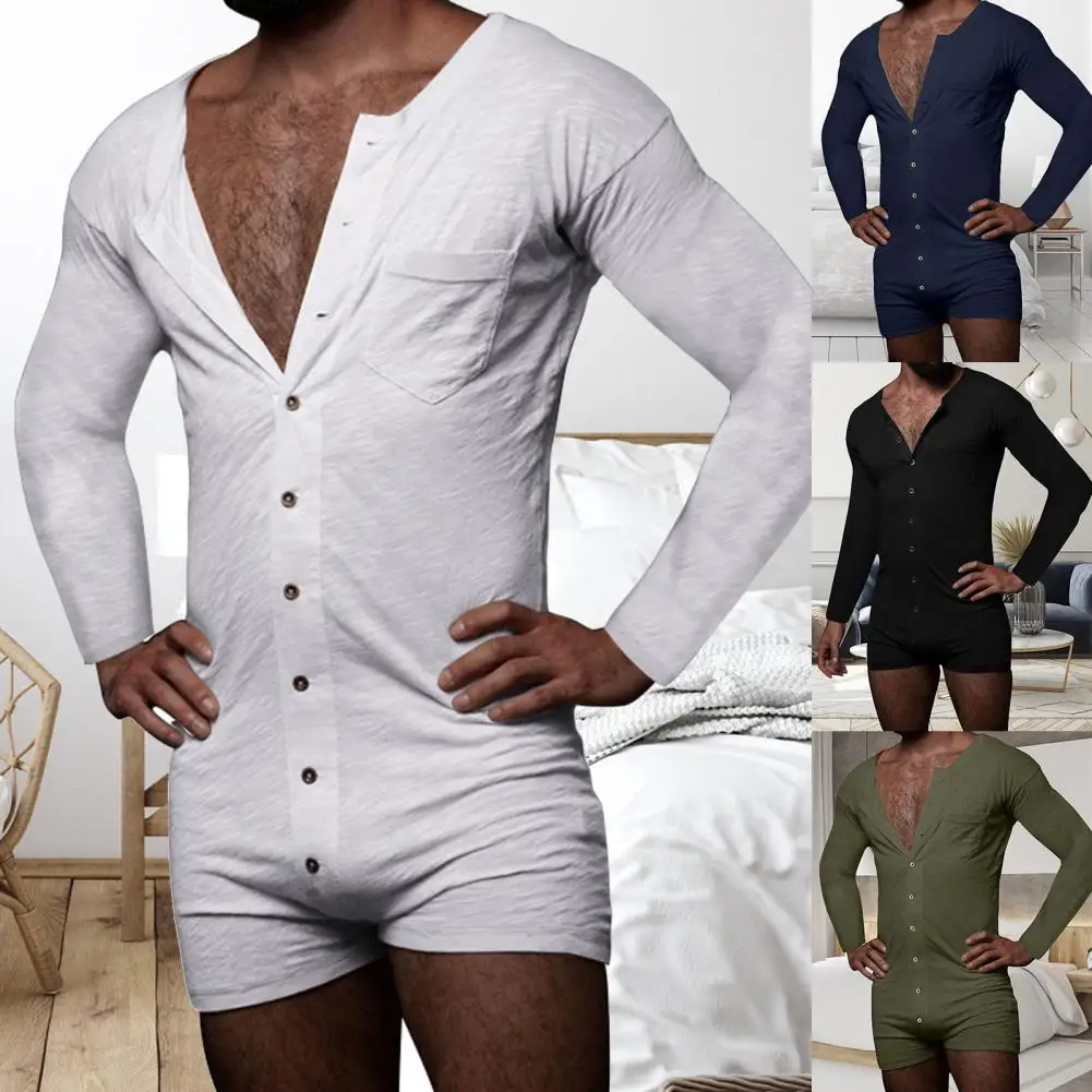 Оптовая продажа, мужской пижамный комплект, однотонный комбинезон с длинным рукавом, однобортный комбинезон, одежда для сна, одежда для сна, Комбинезоны для взрослых