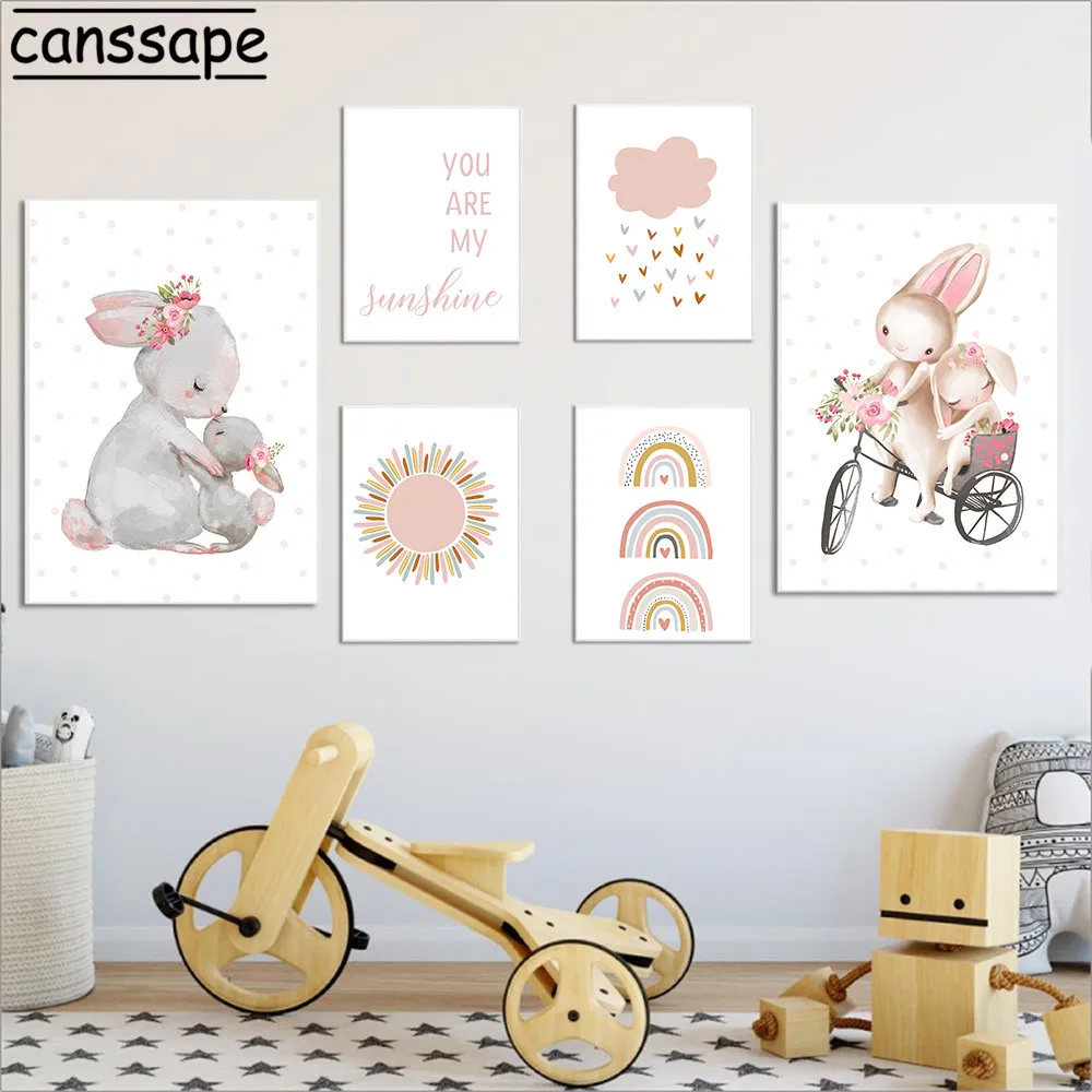 Постер в виде кролика, детская настенная Картина на холсте, медведь...