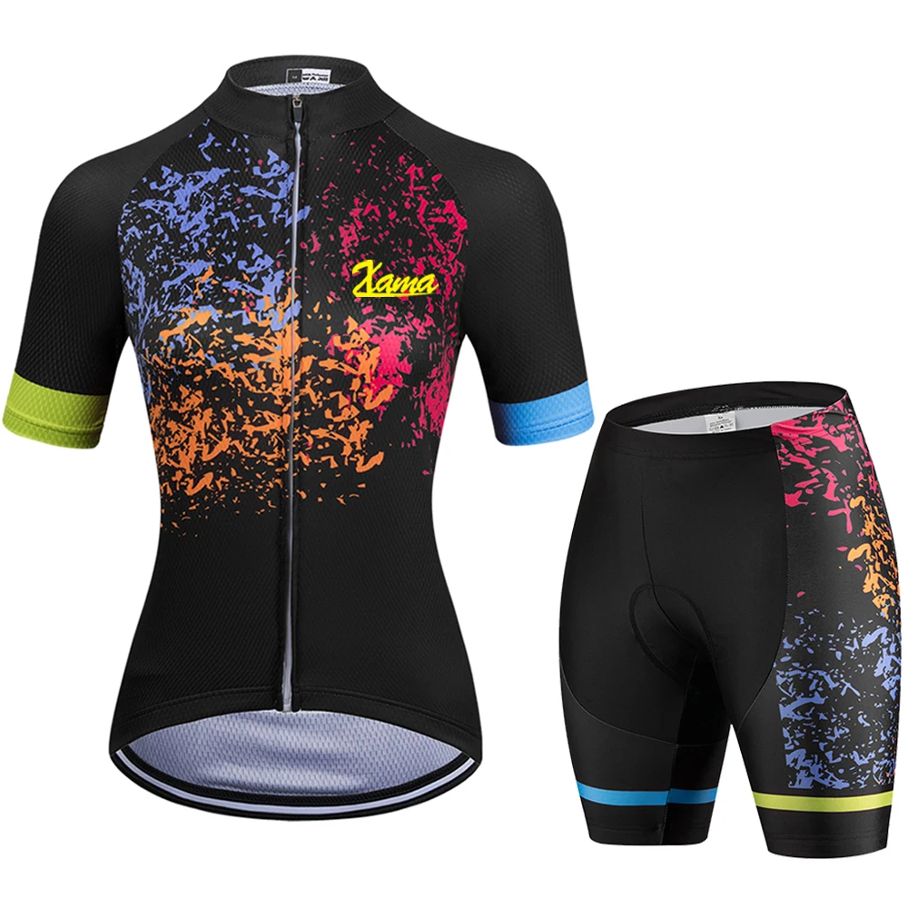 2021 г., XAMA Pro, женские велосипедные комплекты Джерси с коротким рукавом, дышащая женская футболка, гелевая розовая Подушка, женская одежда