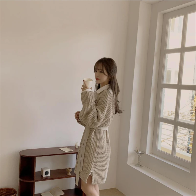 Новый женский свитер, комплект из 2 предметов, Женский вязаный пуловер, Женский вязаный свитер с длинным рукавом, верхняя одежда