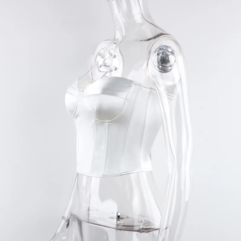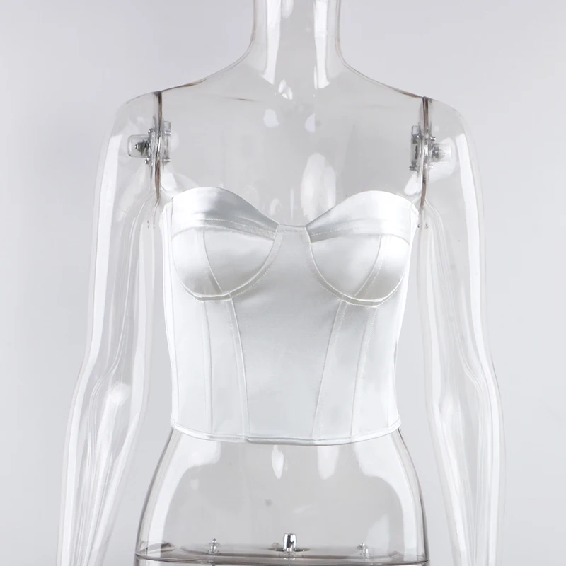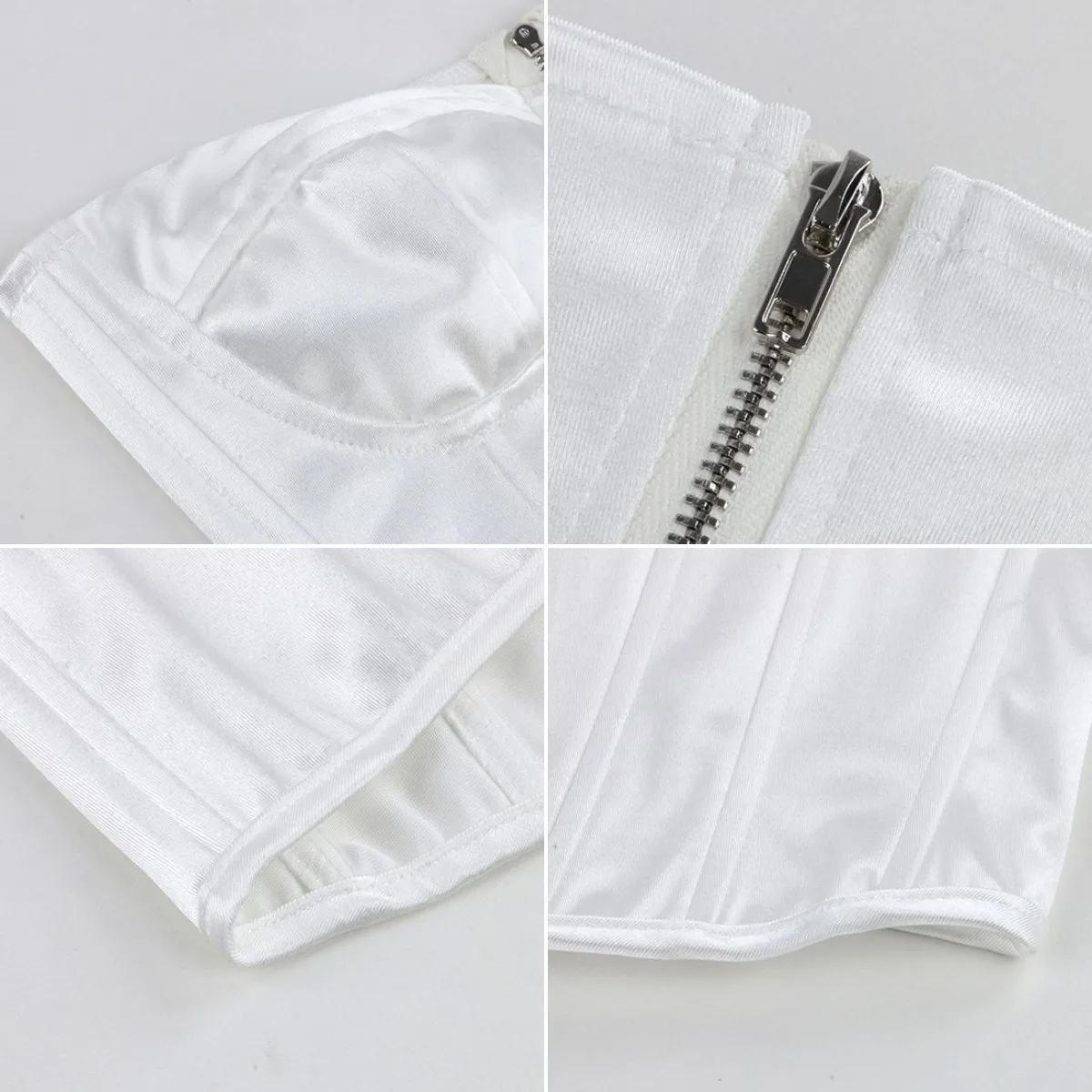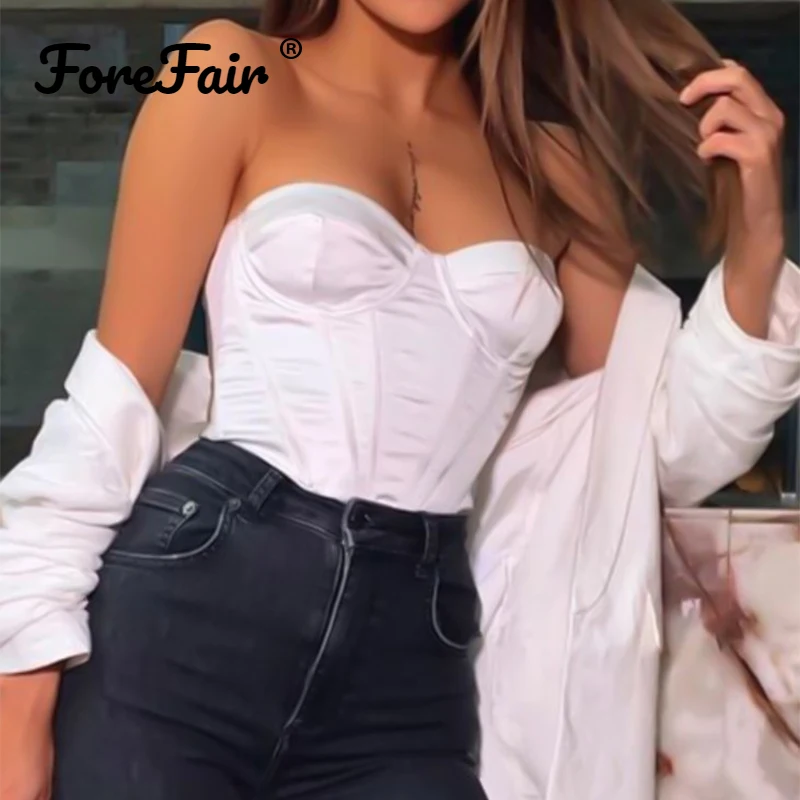 Женский Атласный топ-корсет Forefair, белого цвета, с открытыми плечами, на молнии, летний клубный Топ