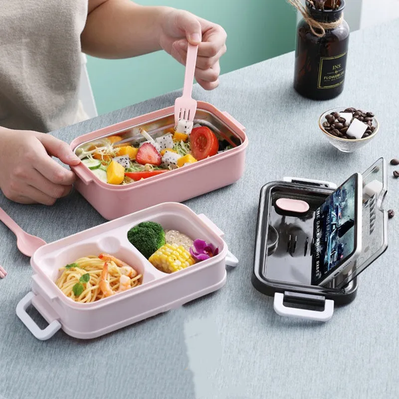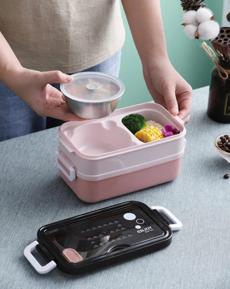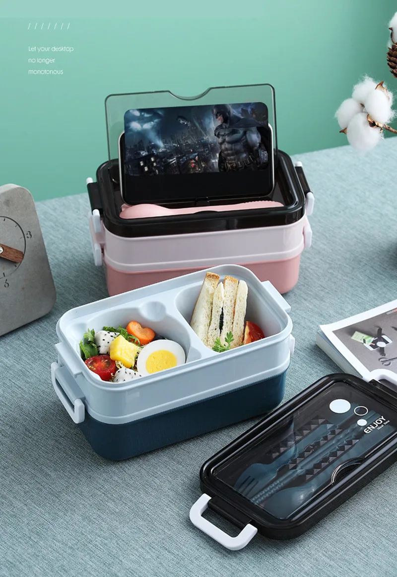 Ланч-бокс портативный, контейнер для хранения еды, ланч-боксы для детей, школьников, двухслойный, для микроволновой печи