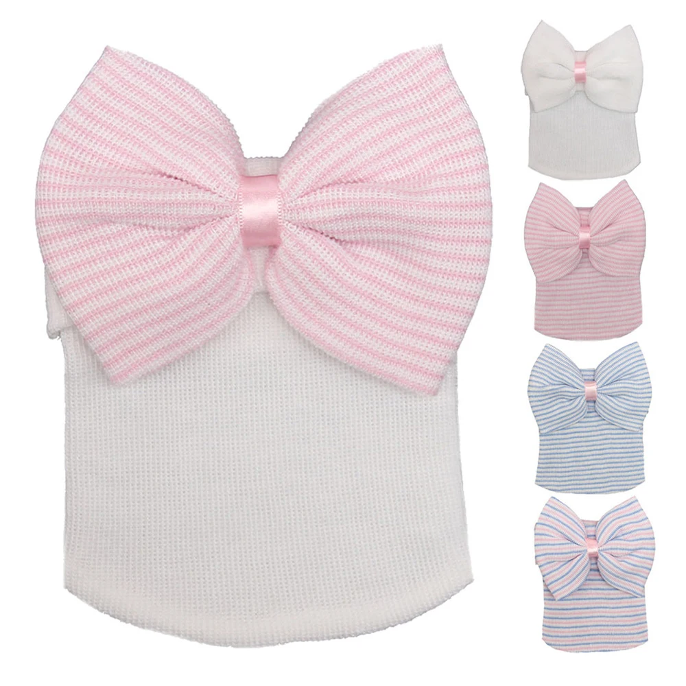 Шапочка для больницы для новорожденных, детская шапочка с большим бантом, милая полосатая шапочка для младенцев, Мягкие Шапки-тюрбан для маленьких девочек